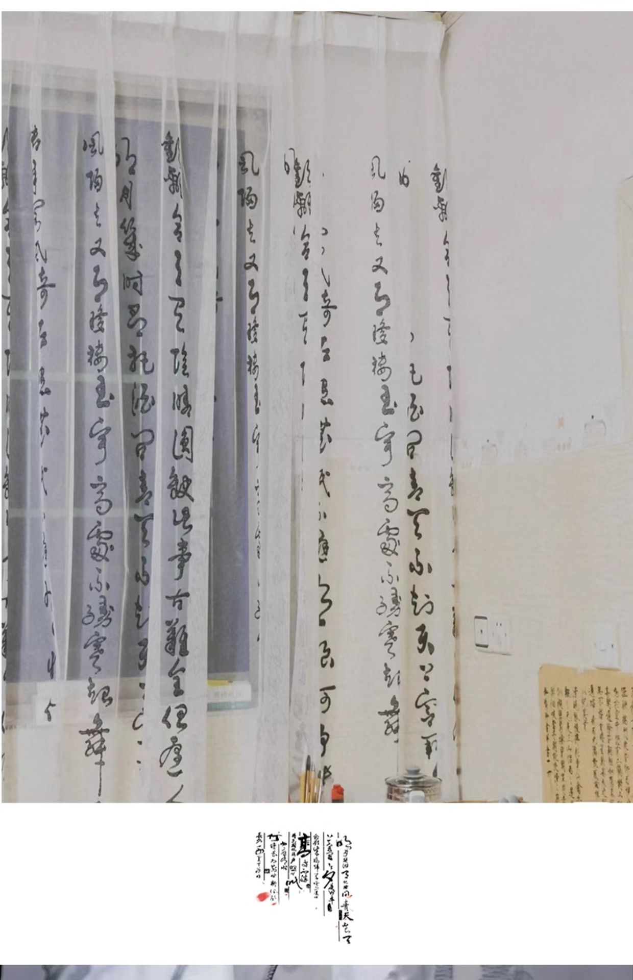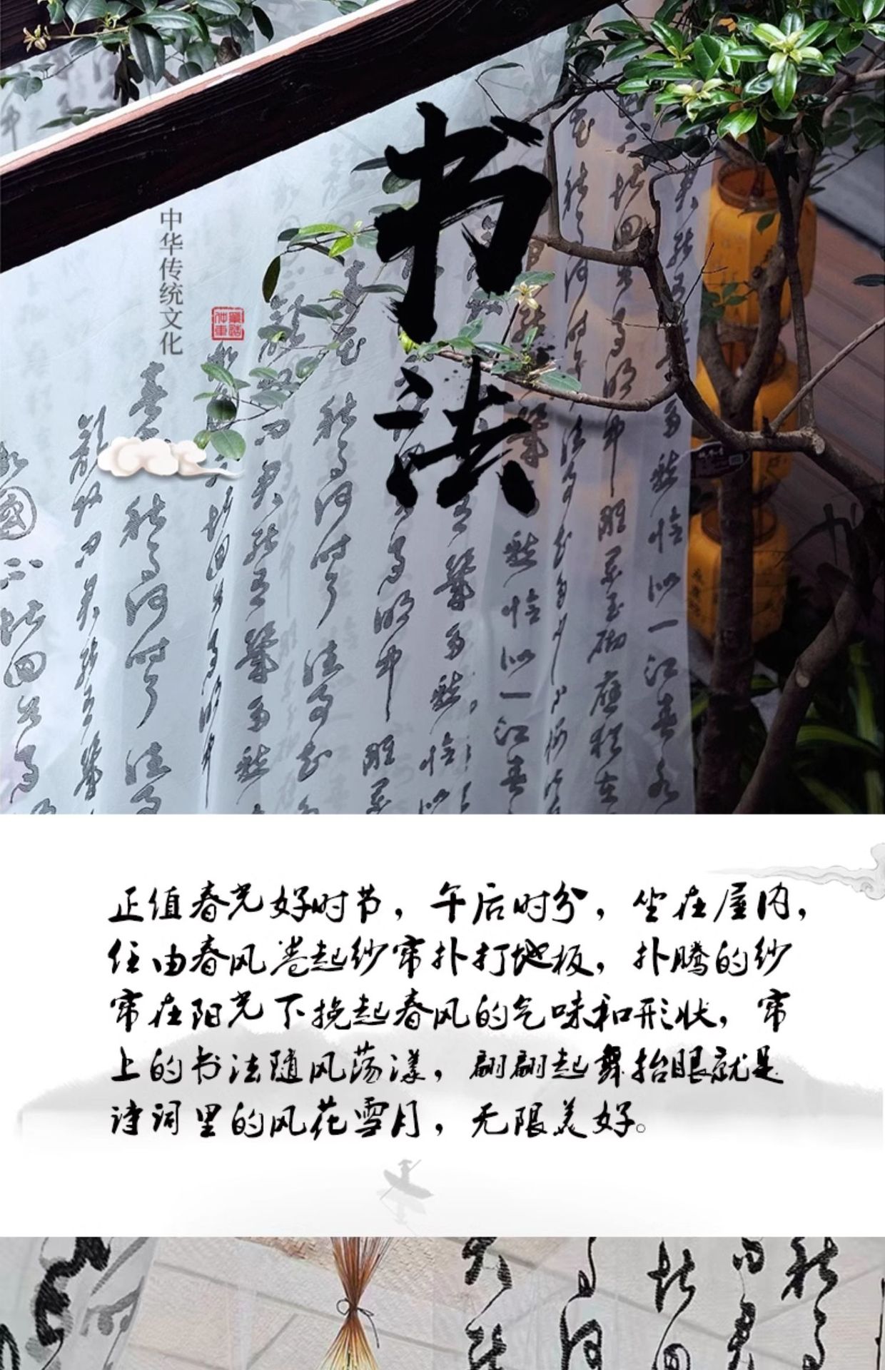 중국 고대 스타일 서예 거즈 커튼 텍스트 브러시 선명 결혼식 Hanfu 소품 연구 중국 스타일 창 거즈 사진 장식스토어 가기