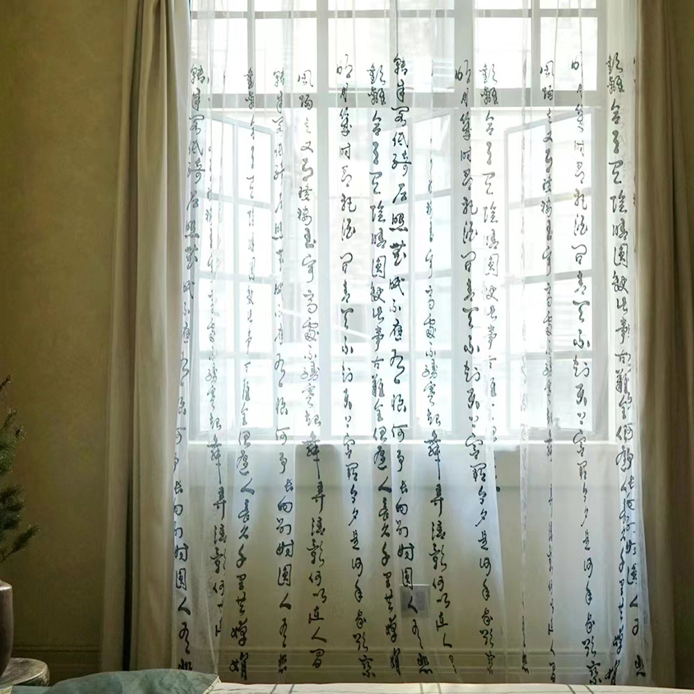 중국 고대 스타일 서예 거즈 커튼 텍스트 브러시 선명 결혼식 Hanfu 소품 연구 중국 스타일 창 거즈 사진 장식