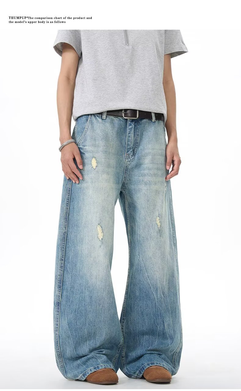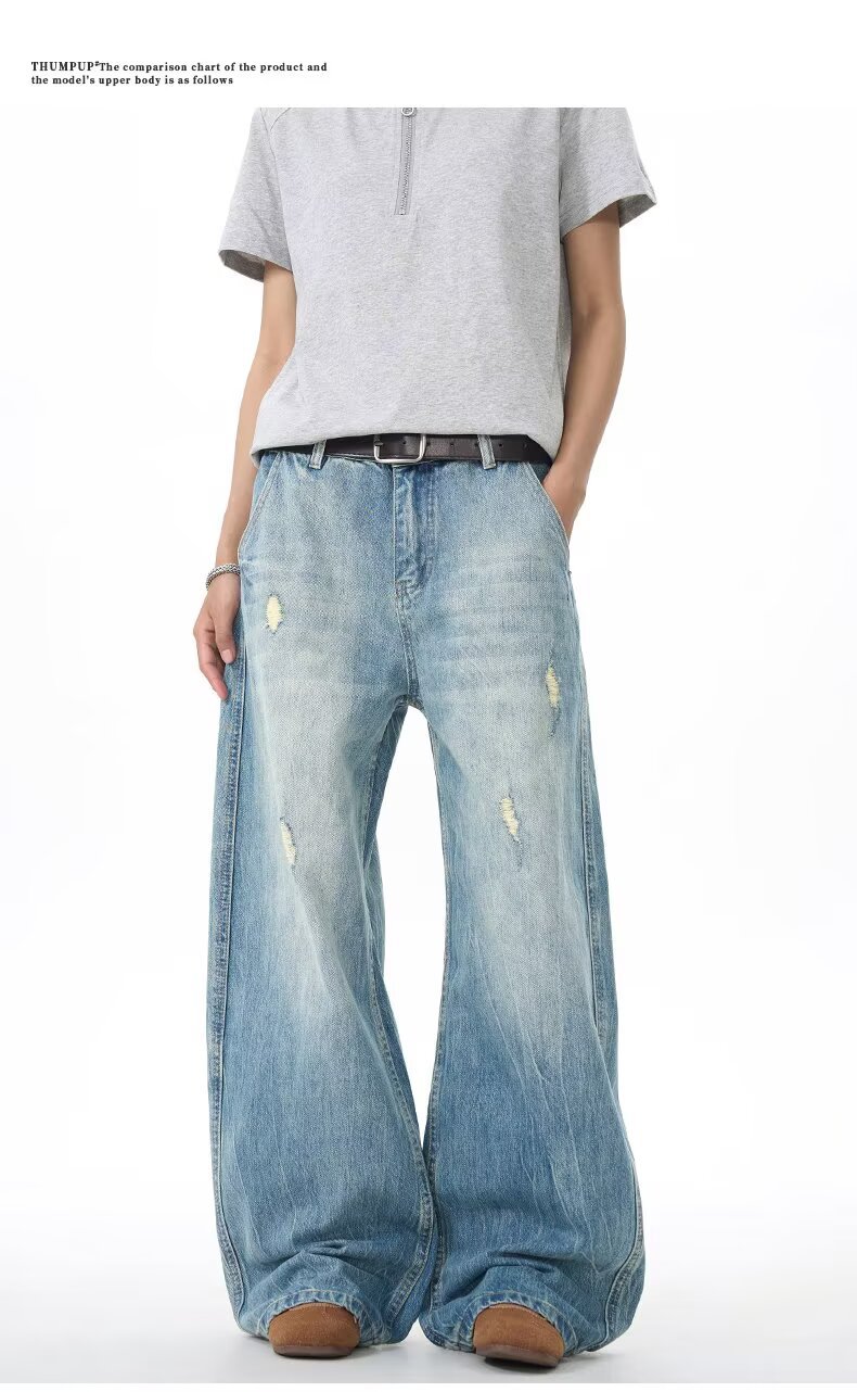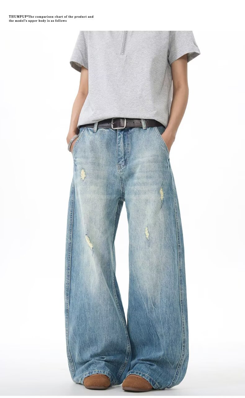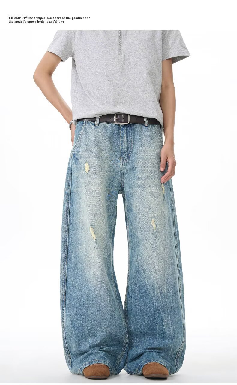 남성용 아메리칸 레트로 크랙 디자인 청바지 2025 트렌디 브랜드 빈티지 워싱 찢어진 루즈 스트레이트 팬츠스토어 가기
