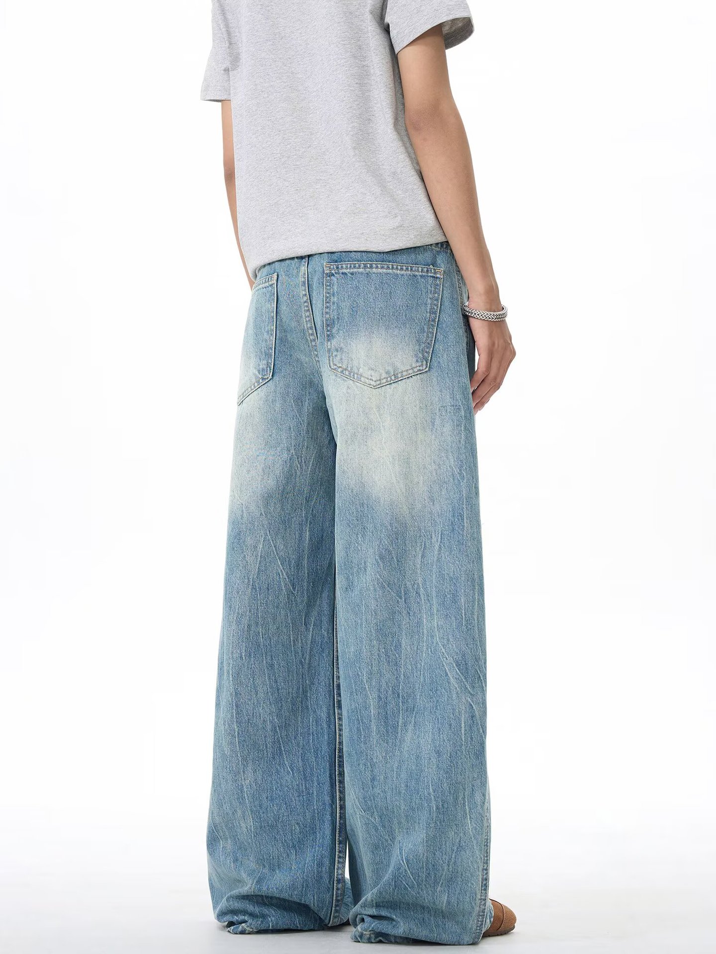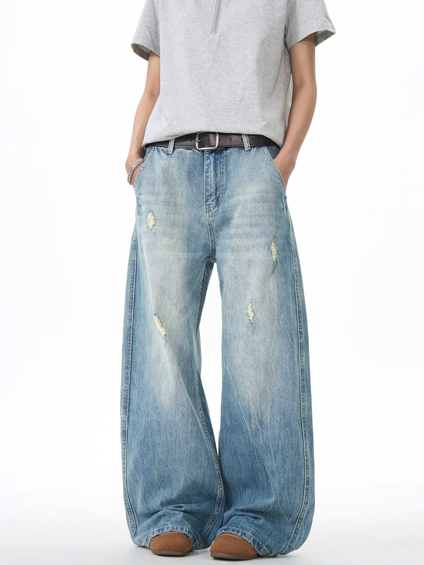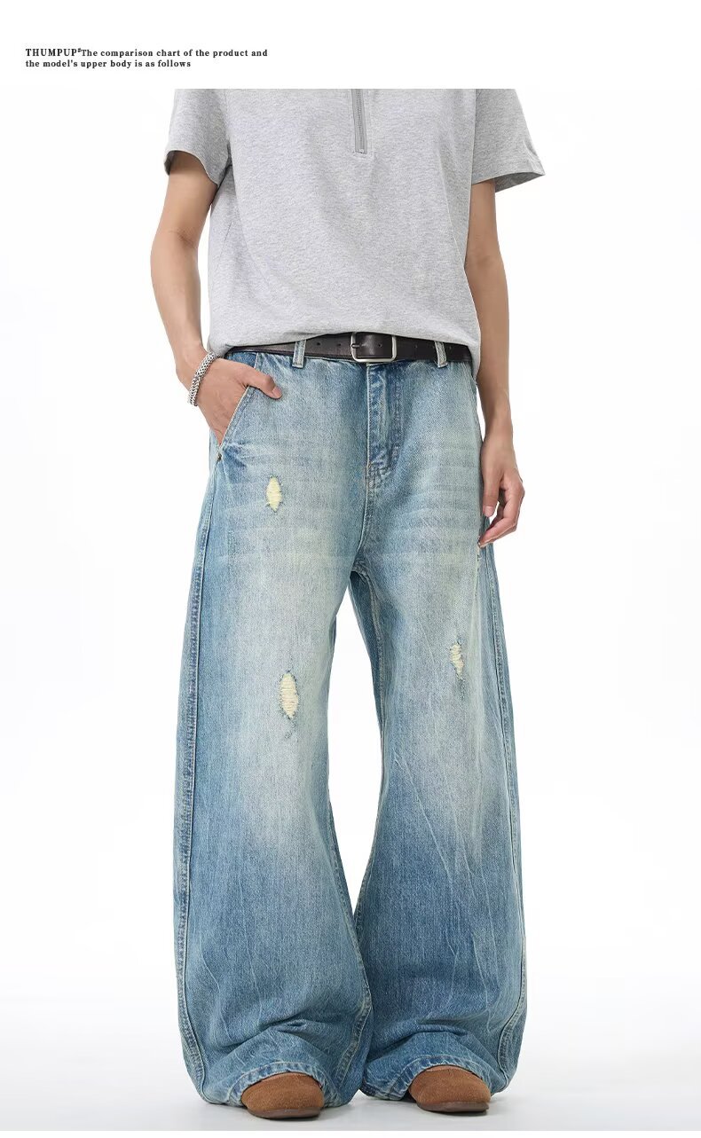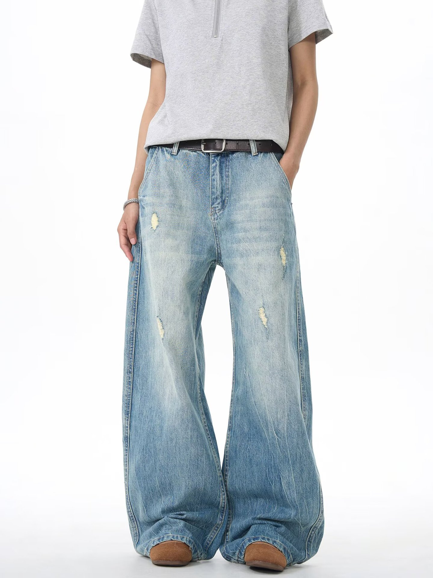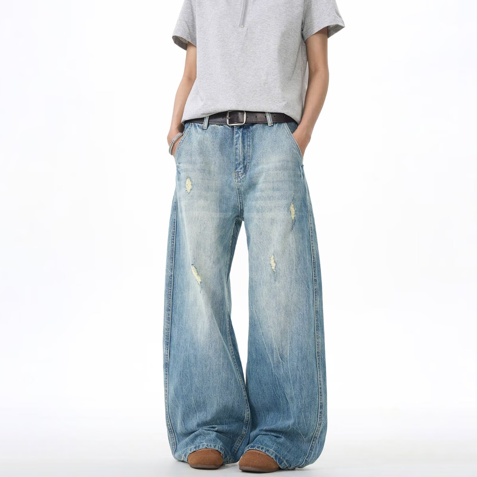 남성용 아메리칸 레트로 크랙 디자인 청바지 2025 트렌디 브랜드 빈티지 워싱 찢어진 루즈 스트레이트 팬츠