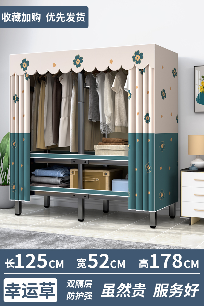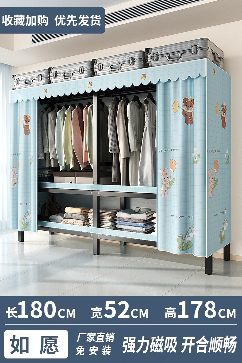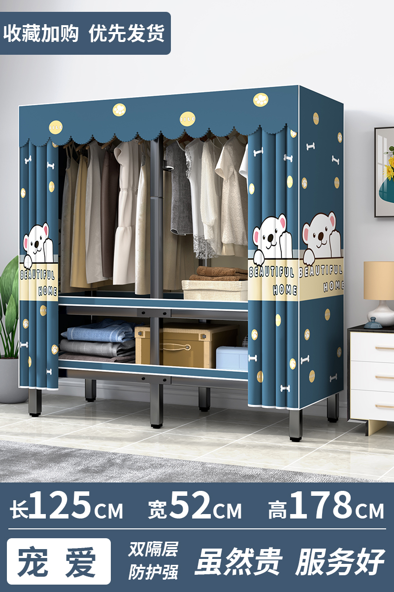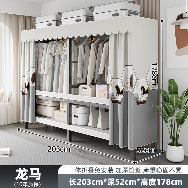 설치가 필요 없는 옷장, 간이 천 옷장, 임대실, 침실, 가정용, 전체 강철 프레임, 견고하고 내구성이 뛰어난 수납 접이식 옷장스토어 가기
