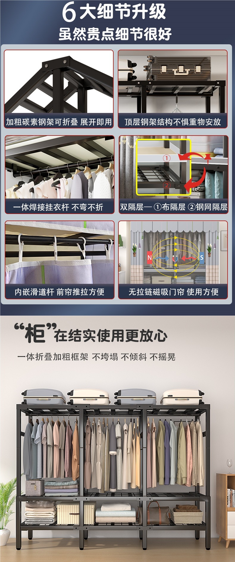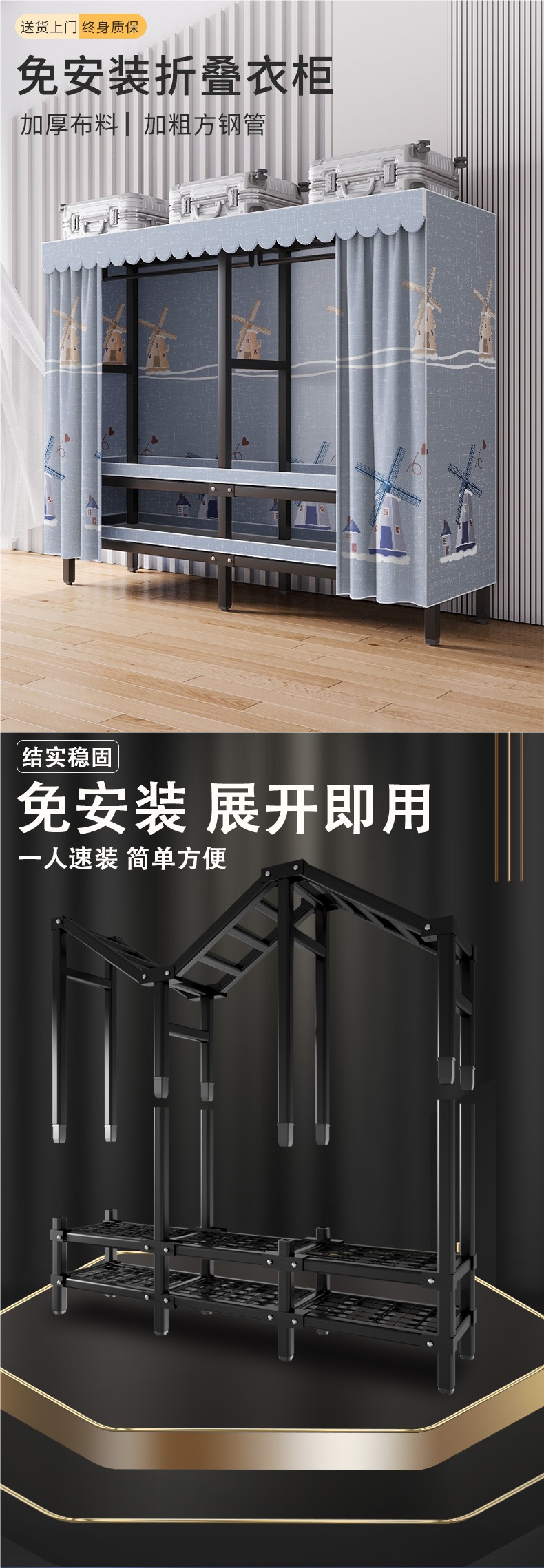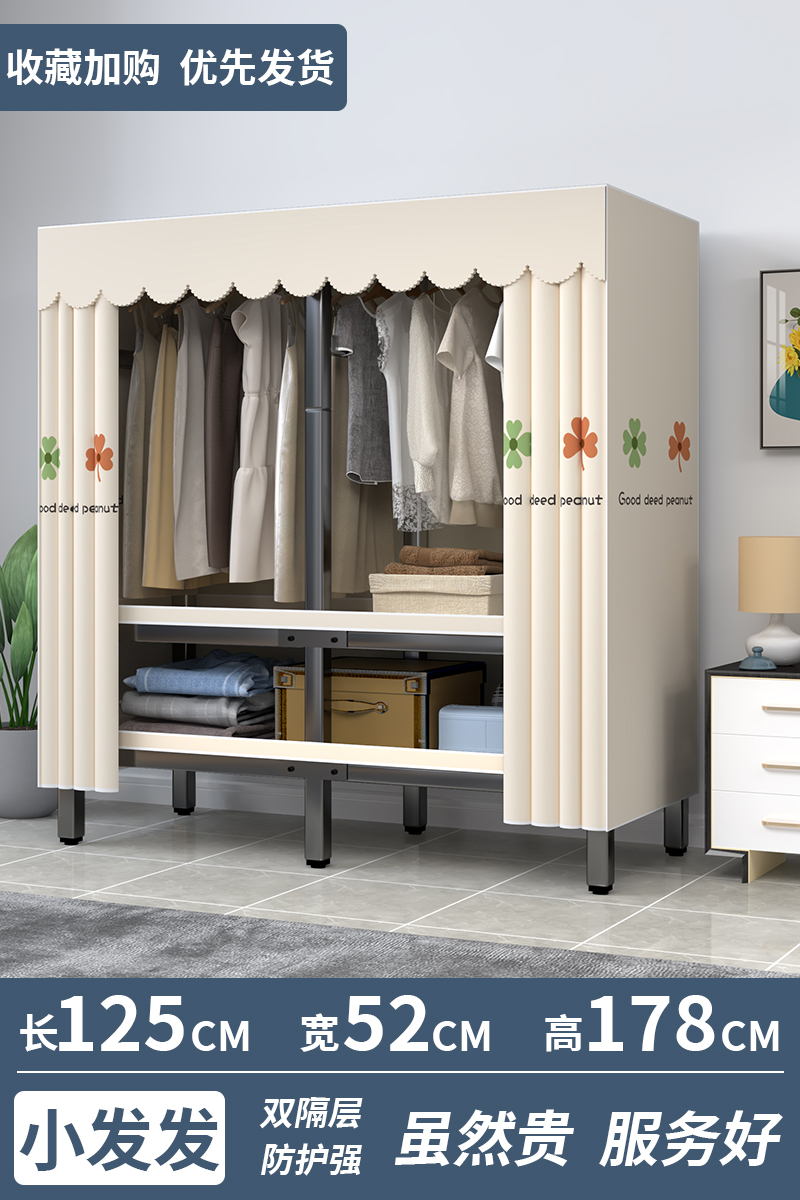 설치가 필요 없는 옷장, 간이 천 옷장, 임대실, 침실, 가정용, 전체 강철 프레임, 견고하고 내구성이 뛰어난 수납 접이식 옷장스토어 가기