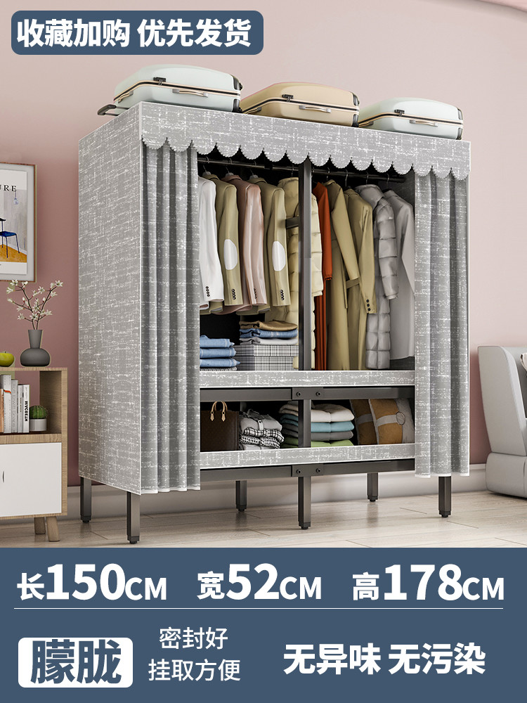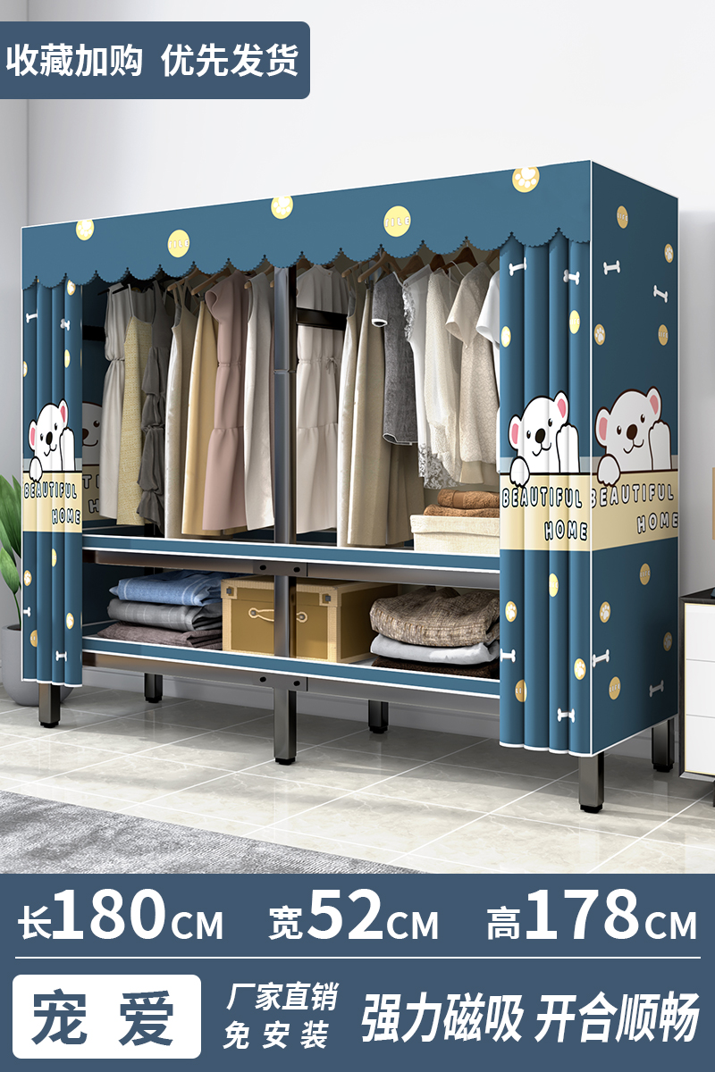 설치가 필요 없는 옷장, 간이 천 옷장, 임대실, 침실, 가정용, 전체 강철 프레임, 견고하고 내구성이 뛰어난 수납 접이식 옷장