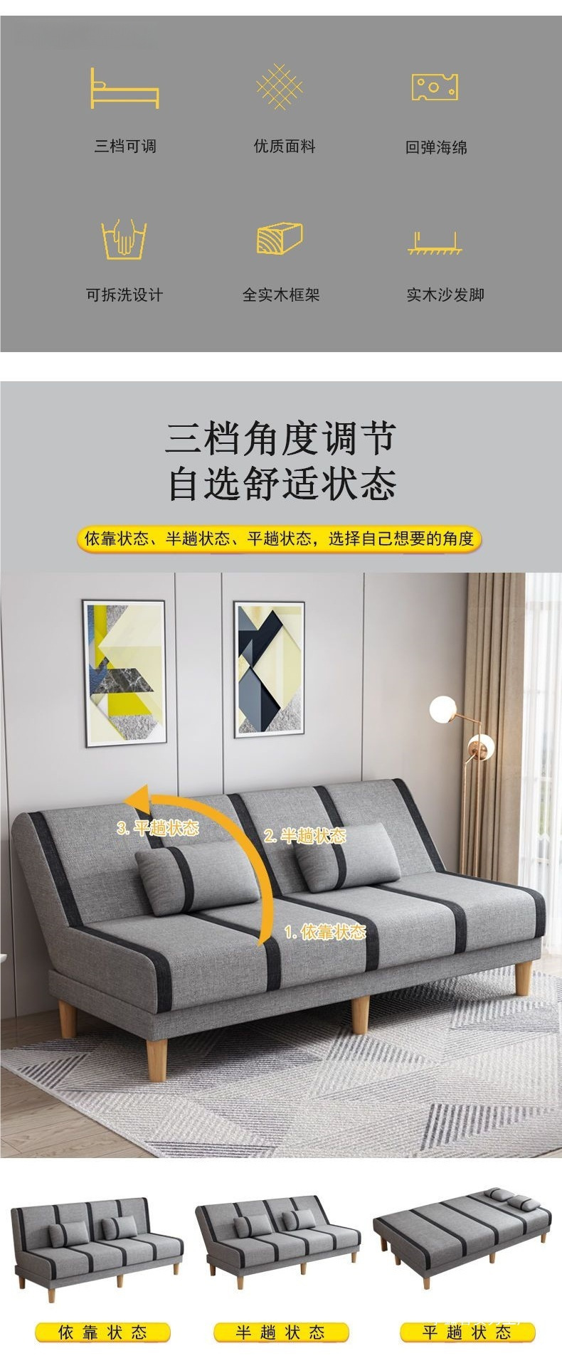(집으로 배달) 작은 가정용 패브릭 소파 거실 임대실 접이식 소파 베드 이중 용도 싱글 더블 심플