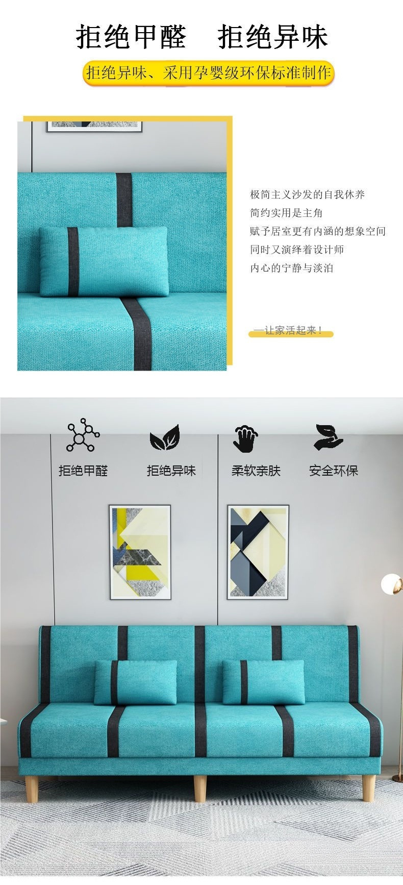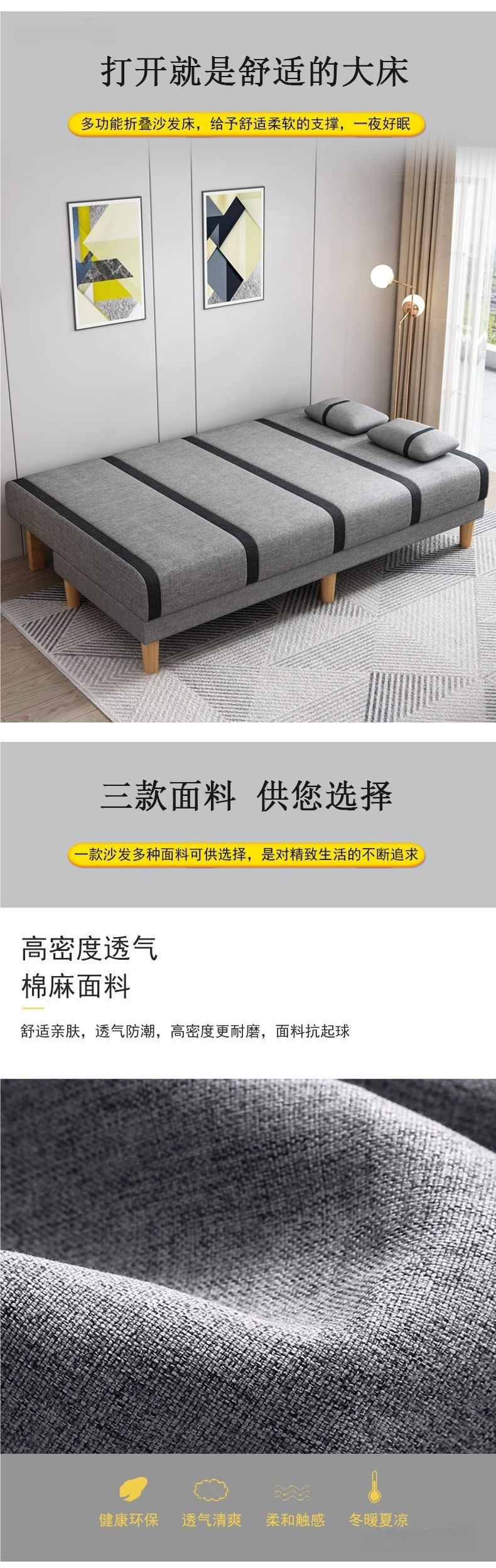 (집으로 배달) 작은 가정용 패브릭 소파 거실 임대실 접이식 소파 베드 이중 용도 싱글 더블 심플스토어 가기