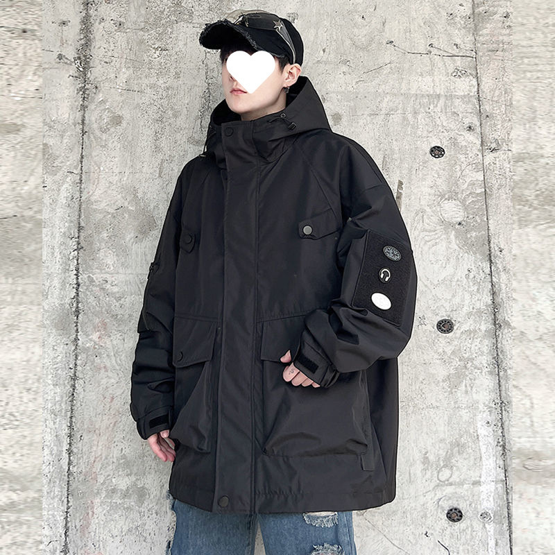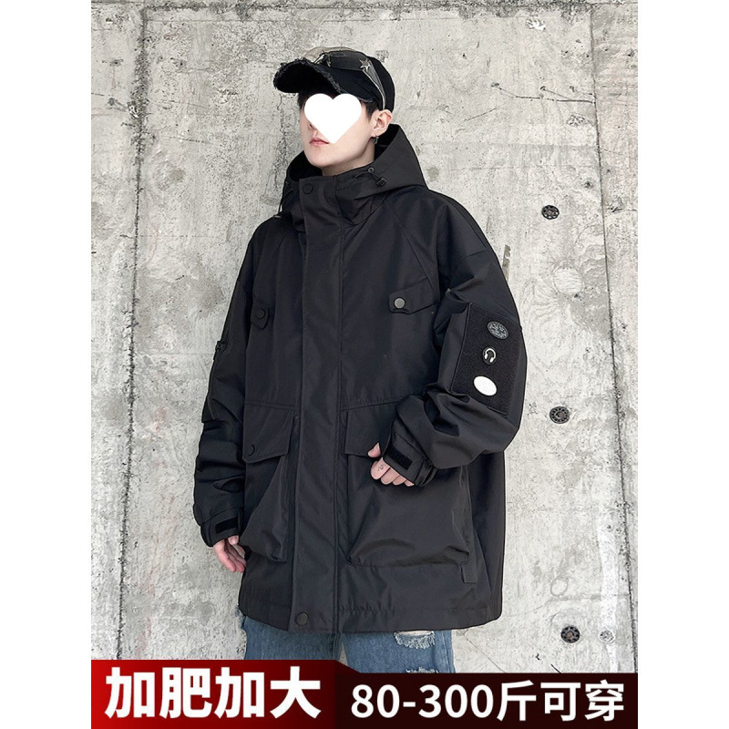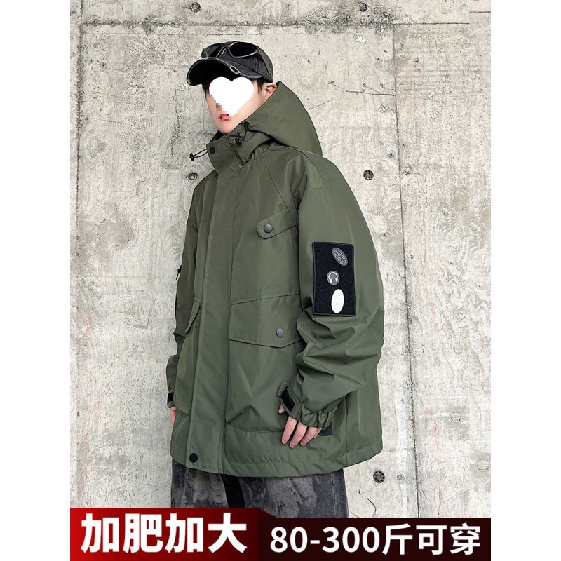 남성용 아메리칸 기능성 후드 재킷 2024 봄, 가을 새로운 스타일 야외 방풍 및 방수 재킷 플러스 사이즈