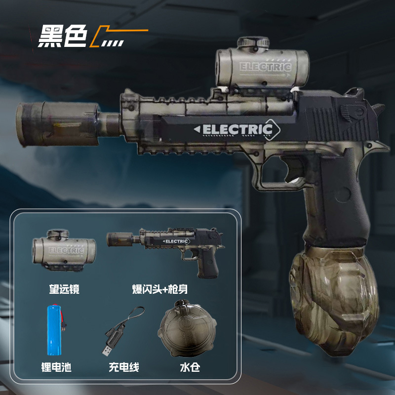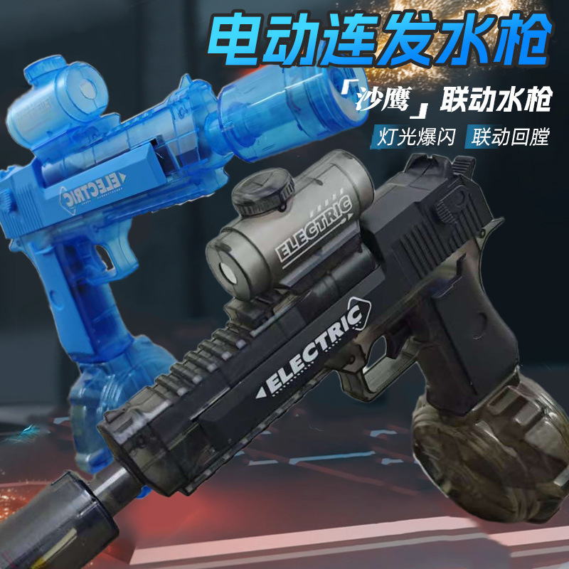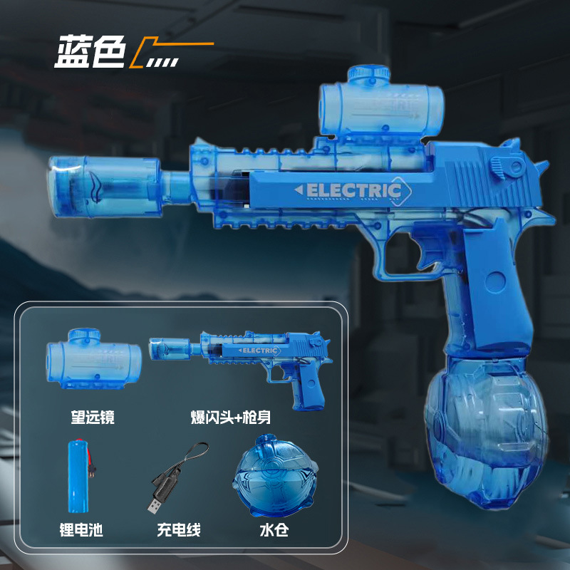 국경 간 투명 플래시 사막 독수리 전기 불꽃 물총 고속 연속 대용량 물총 장난감
