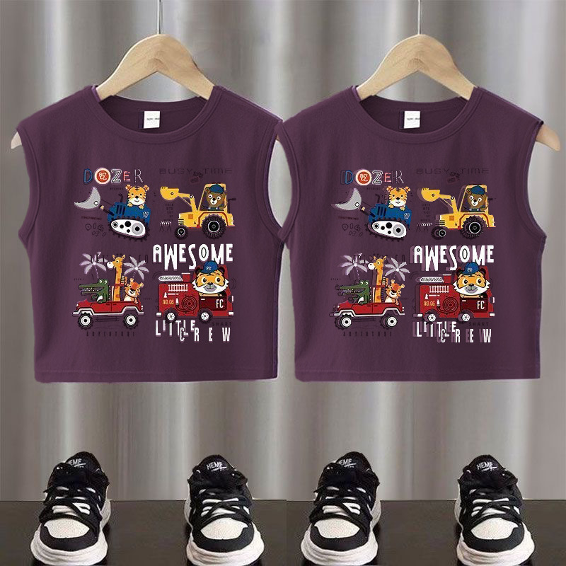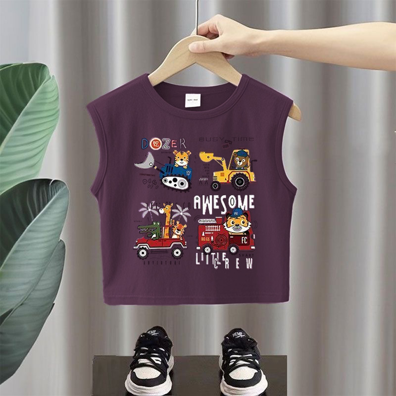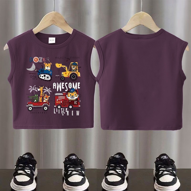 소년의 새로운 100% 면 어린이 얇은 조끼 민소매 인쇄 여름 여름 만화 탑 아기 얇은스토어 가기