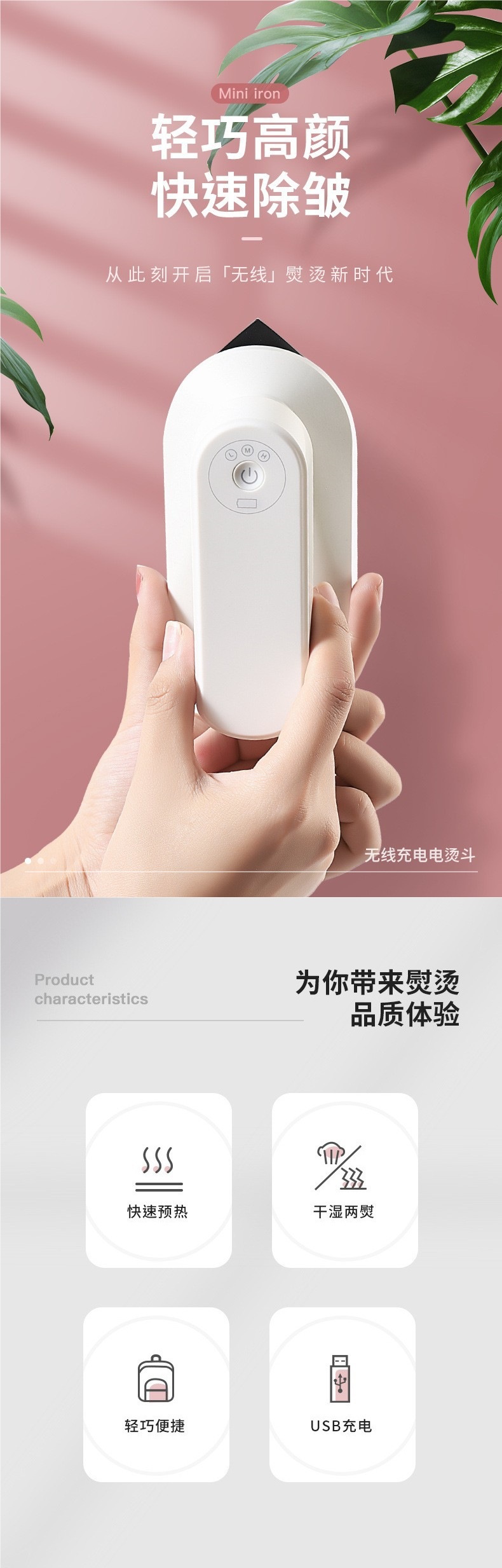 무선 USB 충전식 다리미 미니 휴대용 의류 다림질 기계 여행 휴대용 다림질 기계 가정용 소형 의류 다림질
