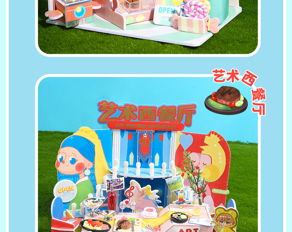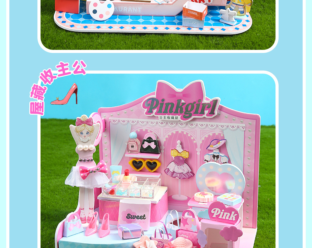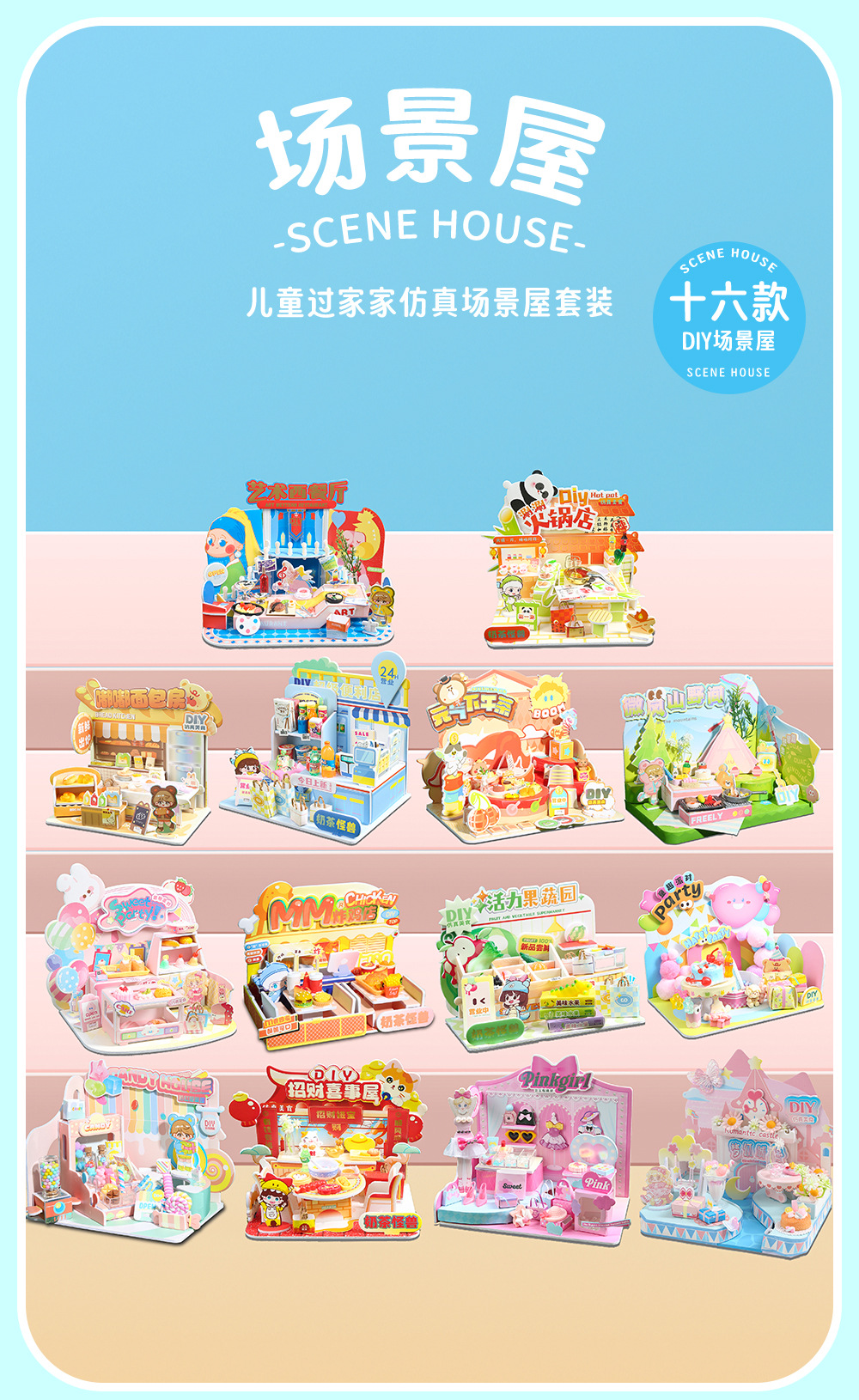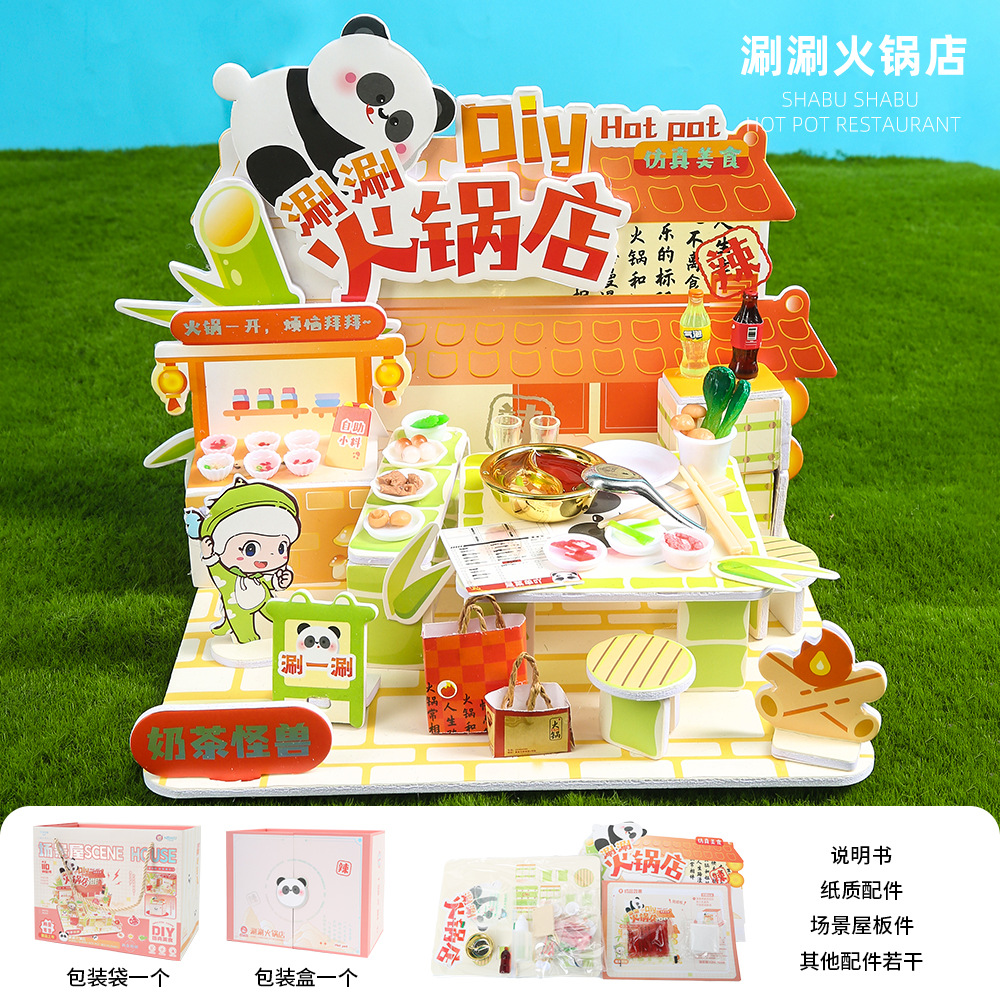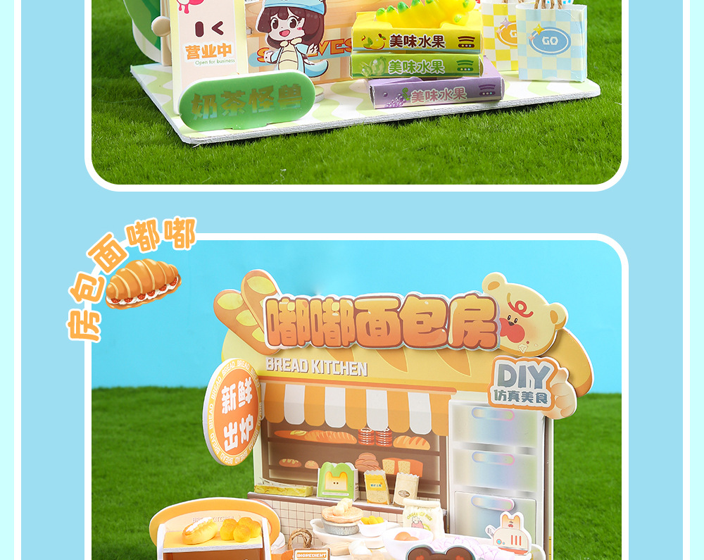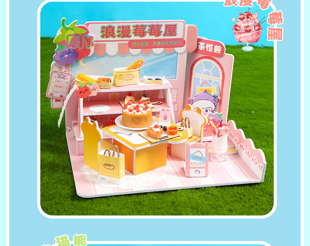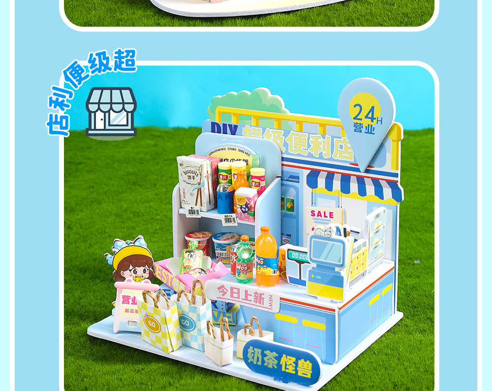 수제 창의적인 DIY 소형 주택 생활 장면 미니 건축 조립식 정적 모형 놀이용 장난감스토어 가기