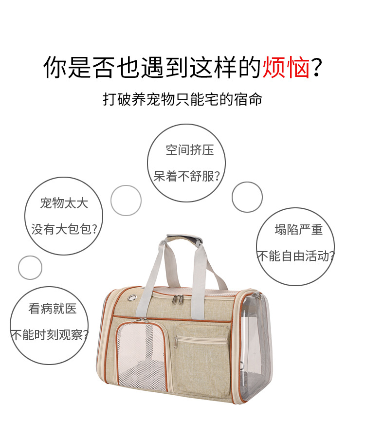 휴대용 투명 애완동물 가방 대용량 고양이 배낭 외출용 휴대용 삼면 투시 경량 애완동물 크로스백