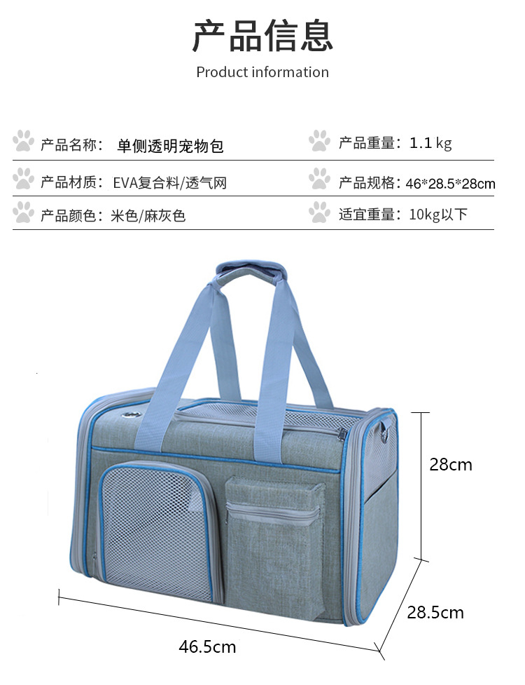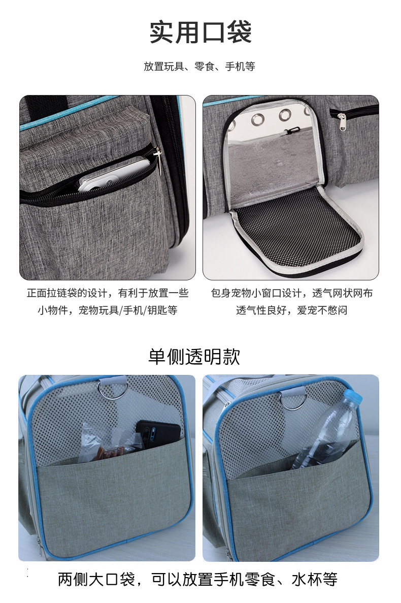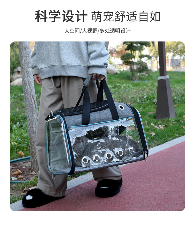 휴대용 투명 애완동물 가방 대용량 고양이 배낭 외출용 휴대용 삼면 투시 경량 애완동물 크로스백스토어 가기