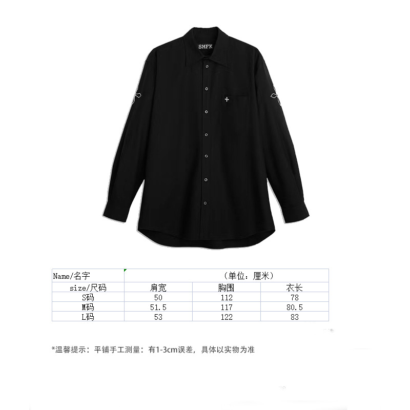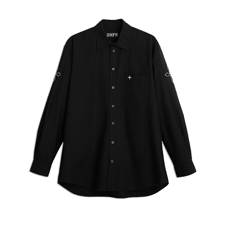 SMK Night Flower Cross 클래식 셔츠 Yu Wenwen과 같은 스타일 다용도 자수 솔리드 컬러 루즈 미니멀리스트스토어 가기
