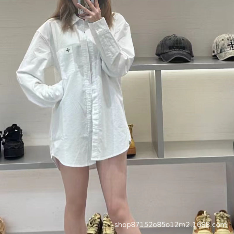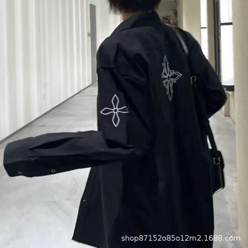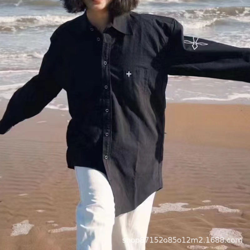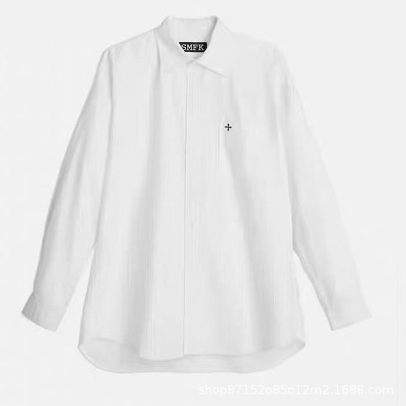 SMK Night Flower Cross 클래식 셔츠 Yu Wenwen과 같은 스타일 다용도 자수 솔리드 컬러 루즈 미니멀리스트