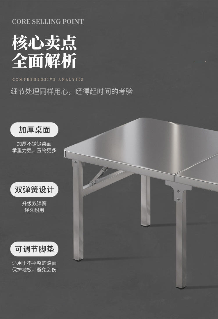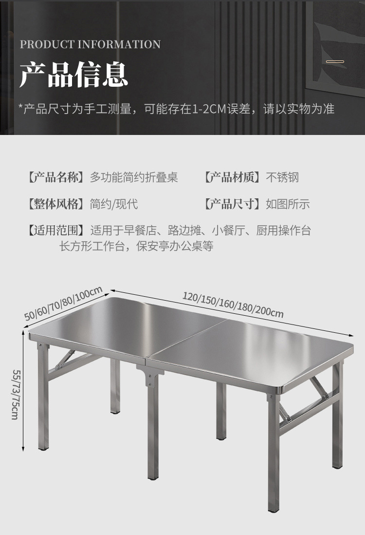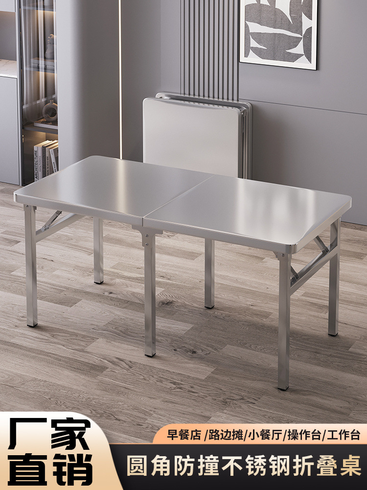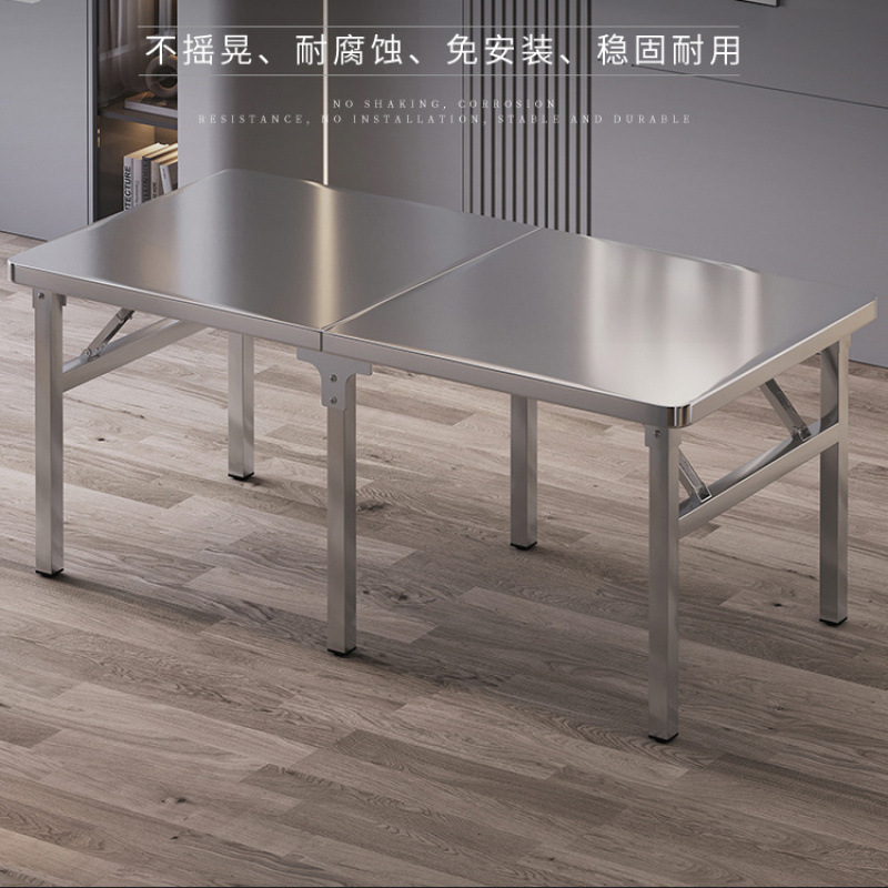 둥근 두꺼운 스테인레스 스틸 접이식 테이블 스톨 야외 상업용 휴대용 직사각형 식탁 작업대스토어 가기