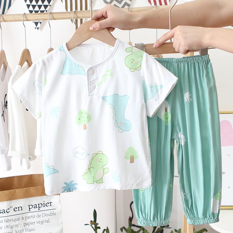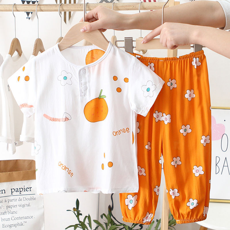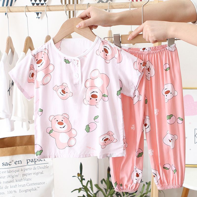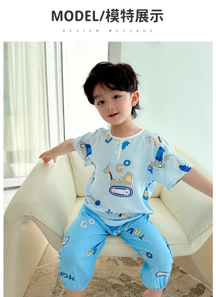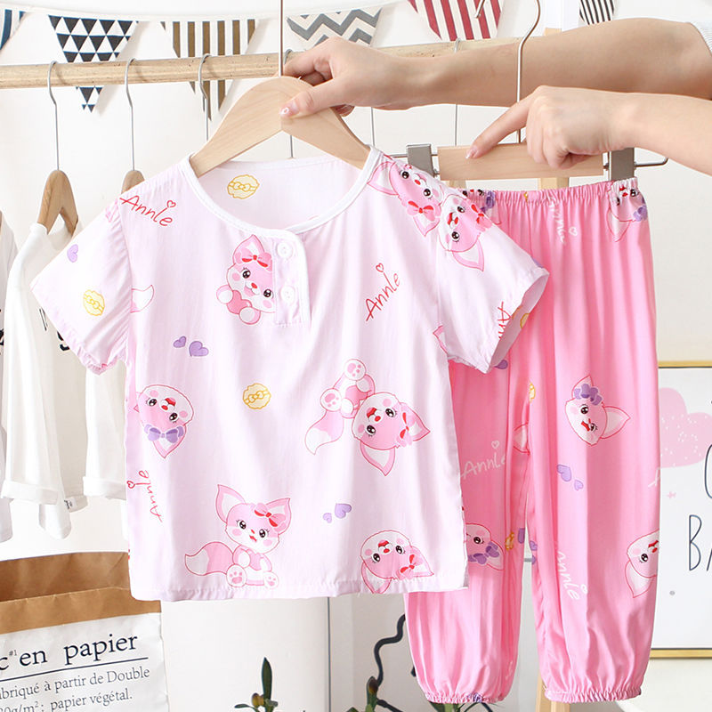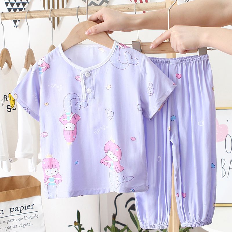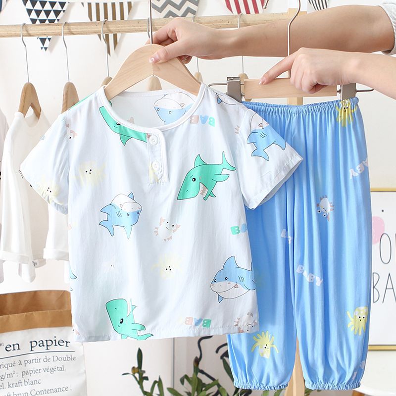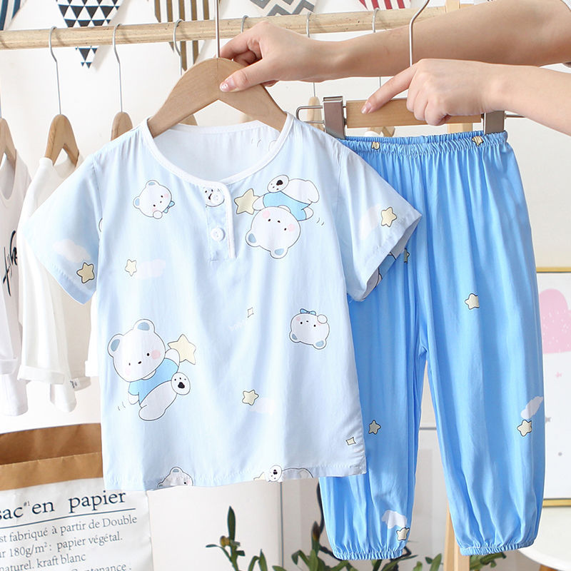 아동 잠옷, 여름 면 실크 양복, 블루머, 얇은 소년 여름 소녀 가정복, 해변 에어컨 옷스토어 가기