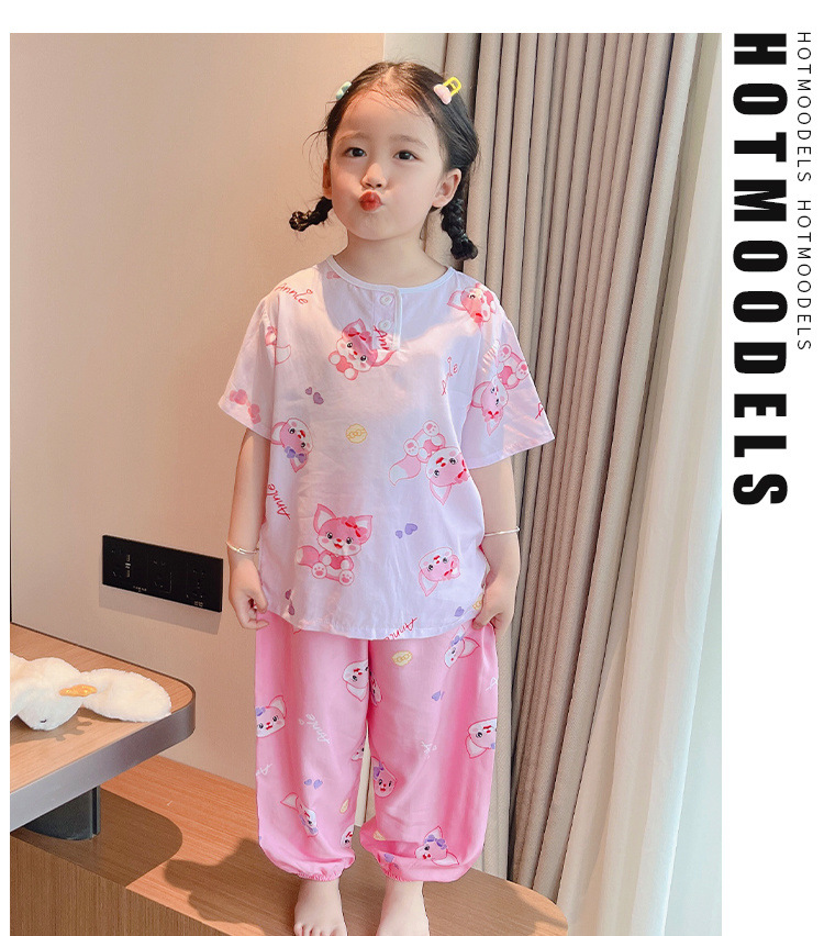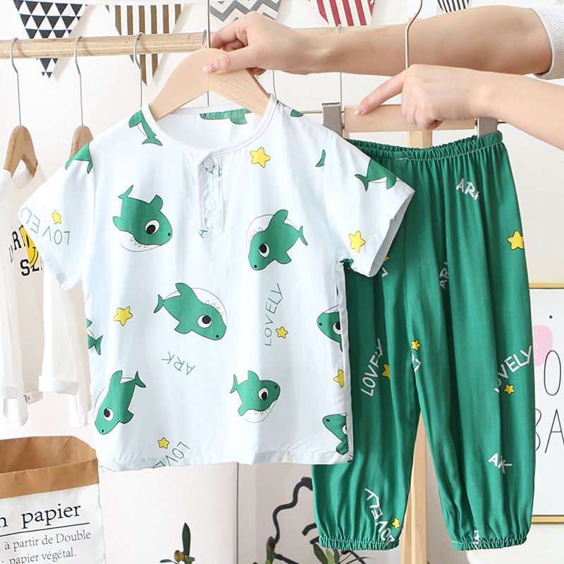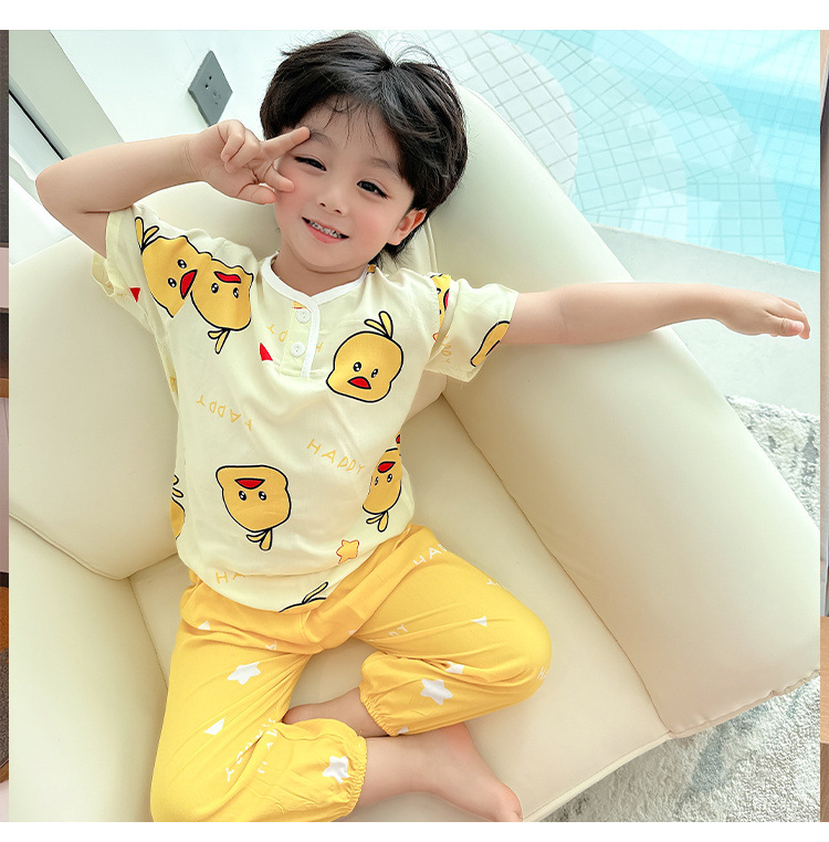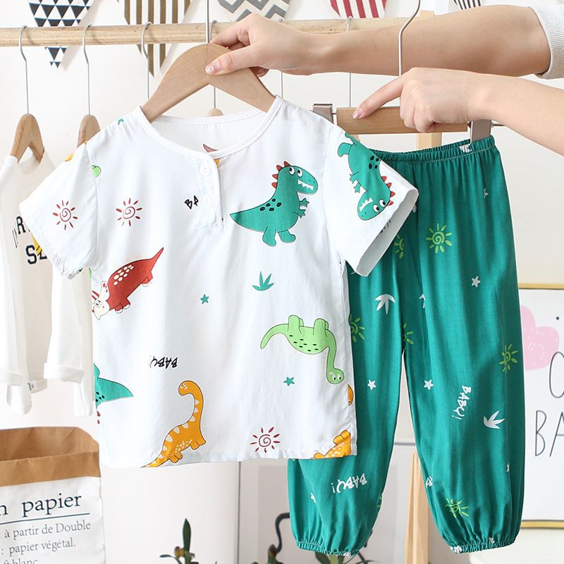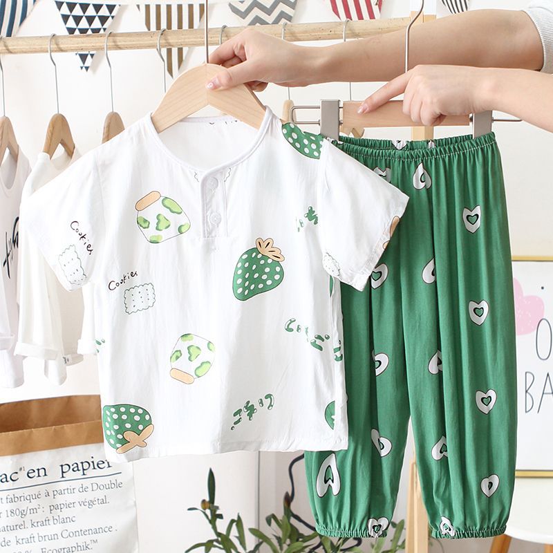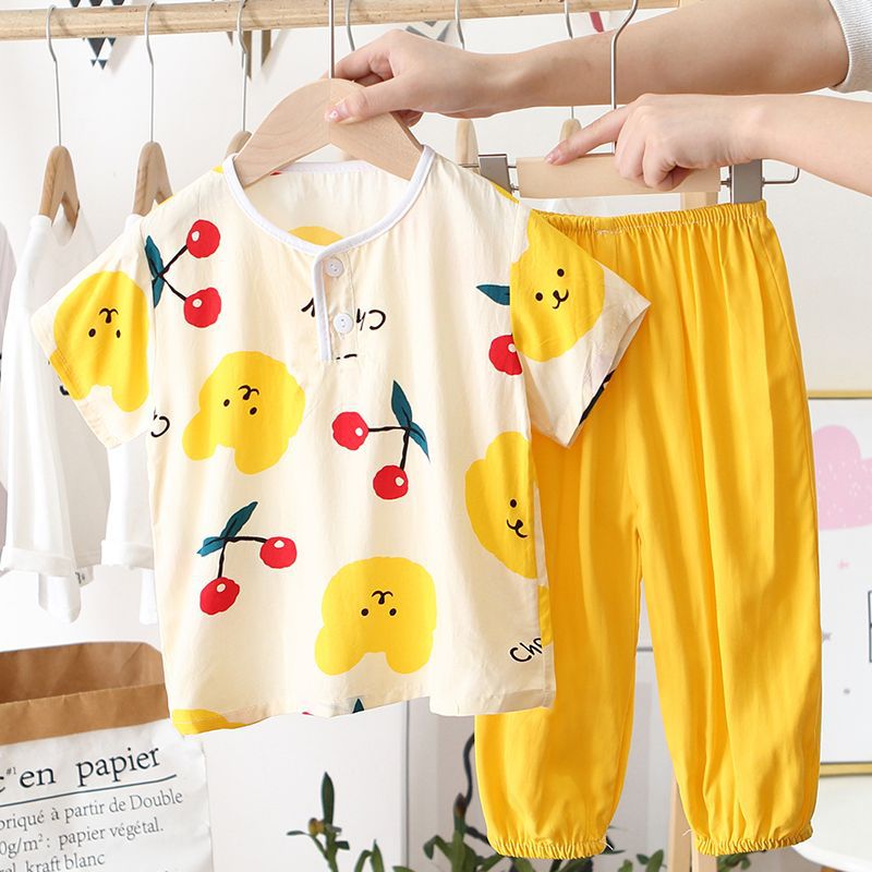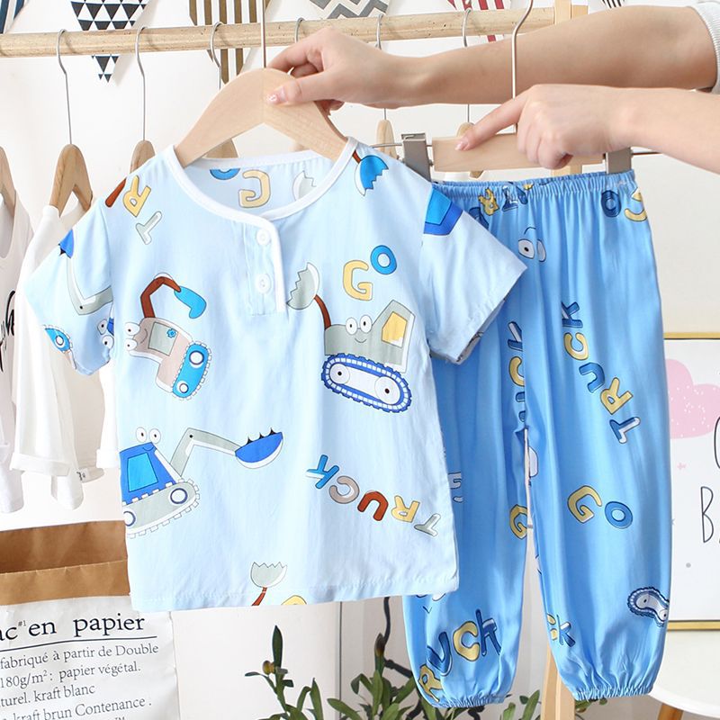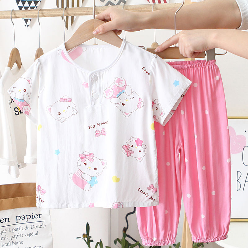 아동 잠옷, 여름 면 실크 양복, 블루머, 얇은 소년 여름 소녀 가정복, 해변 에어컨 옷스토어 가기