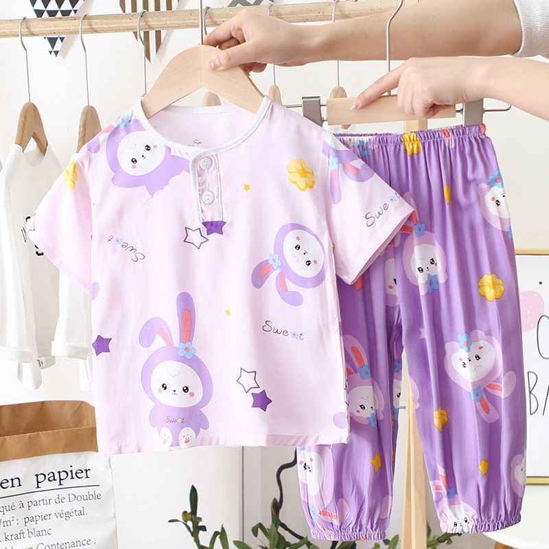 아동 잠옷, 여름 면 실크 양복, 블루머, 얇은 소년 여름 소녀 가정복, 해변 에어컨 옷