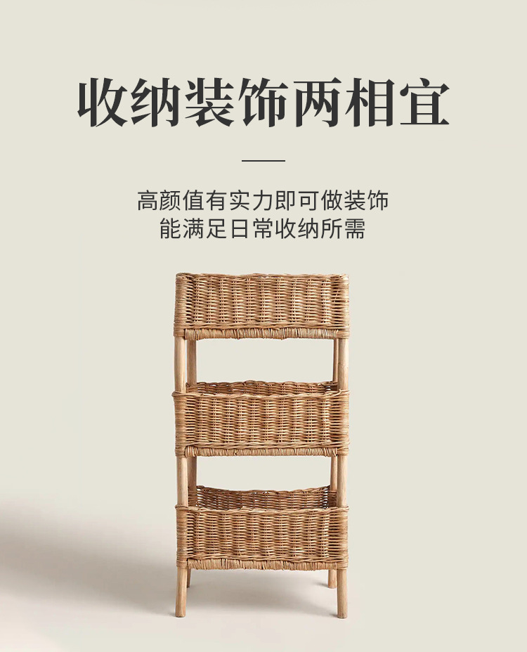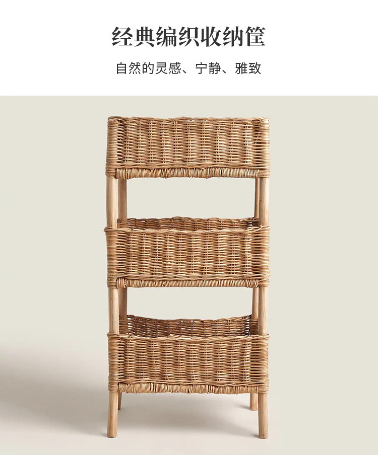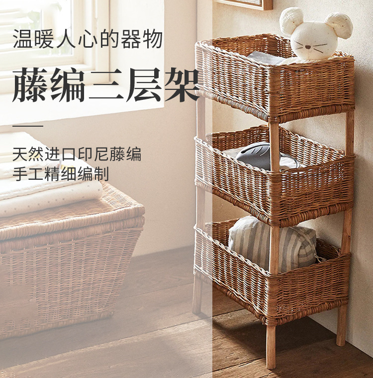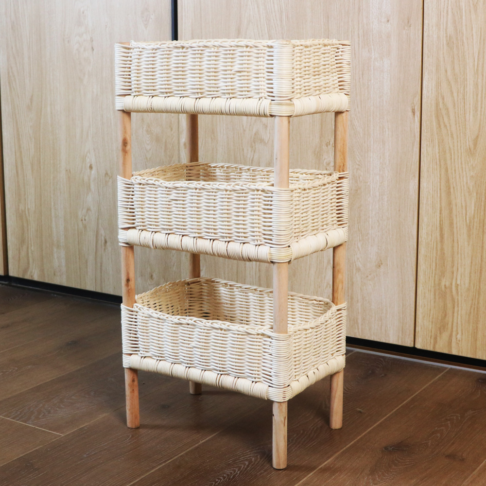 컨트리 스타일 바닥부터 천장까지 닿는 등나무 수납선반, B&B 장식용 잡화 수납선반, 손으로 짠 원목 다층 수납바구니