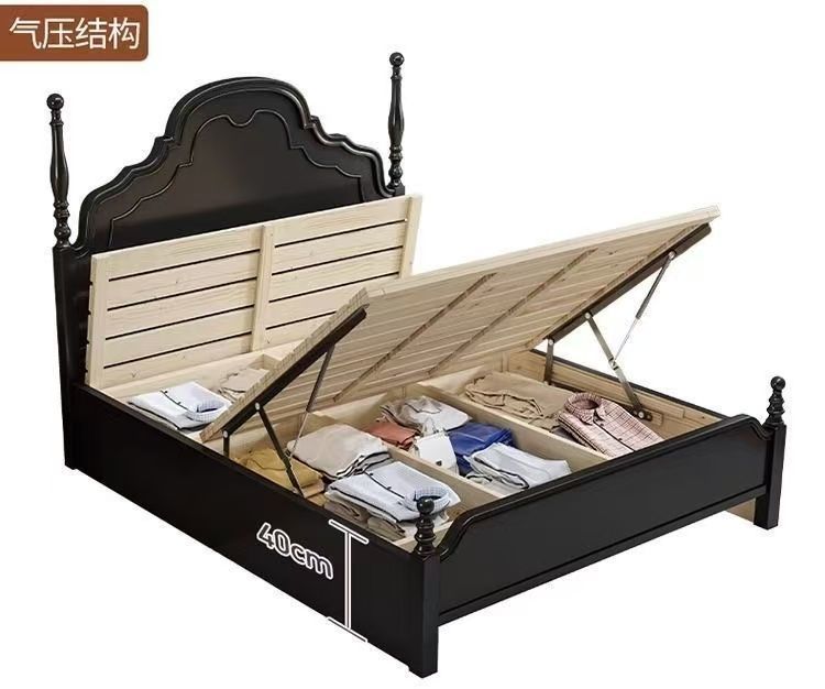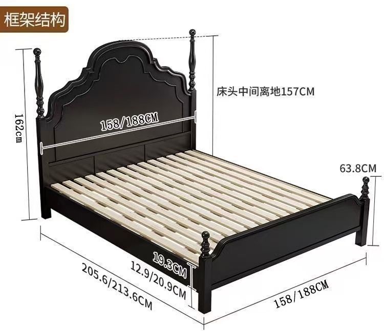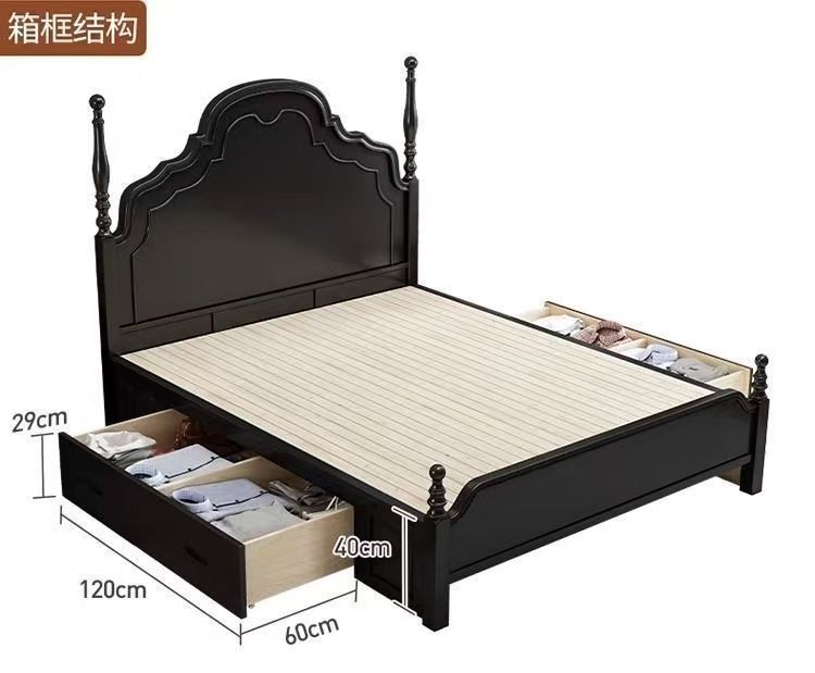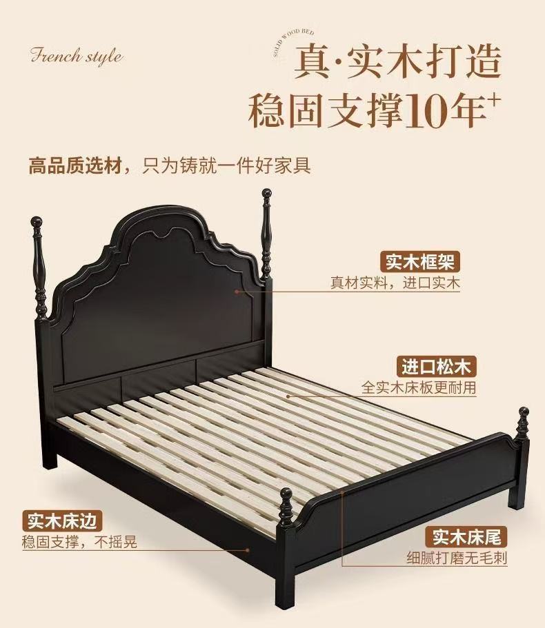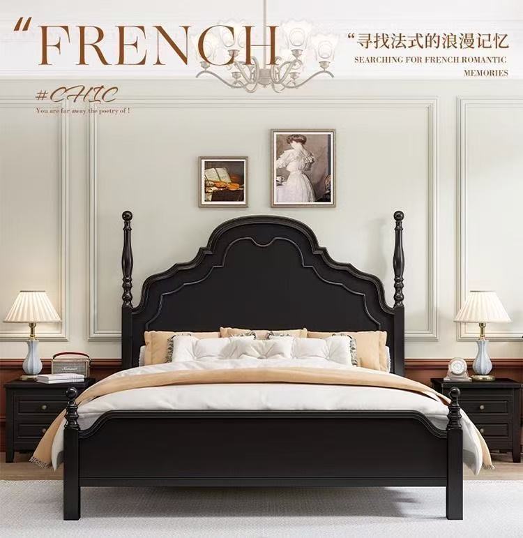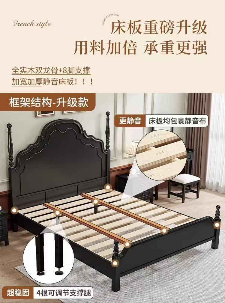 프렌치 라이트 럭셔리 원목 침대 홈 아메리칸 더블 침대 소형 아파트 1.5m1.8m 중세 스타일 웨딩 침대 마스터 침실 대형 침대