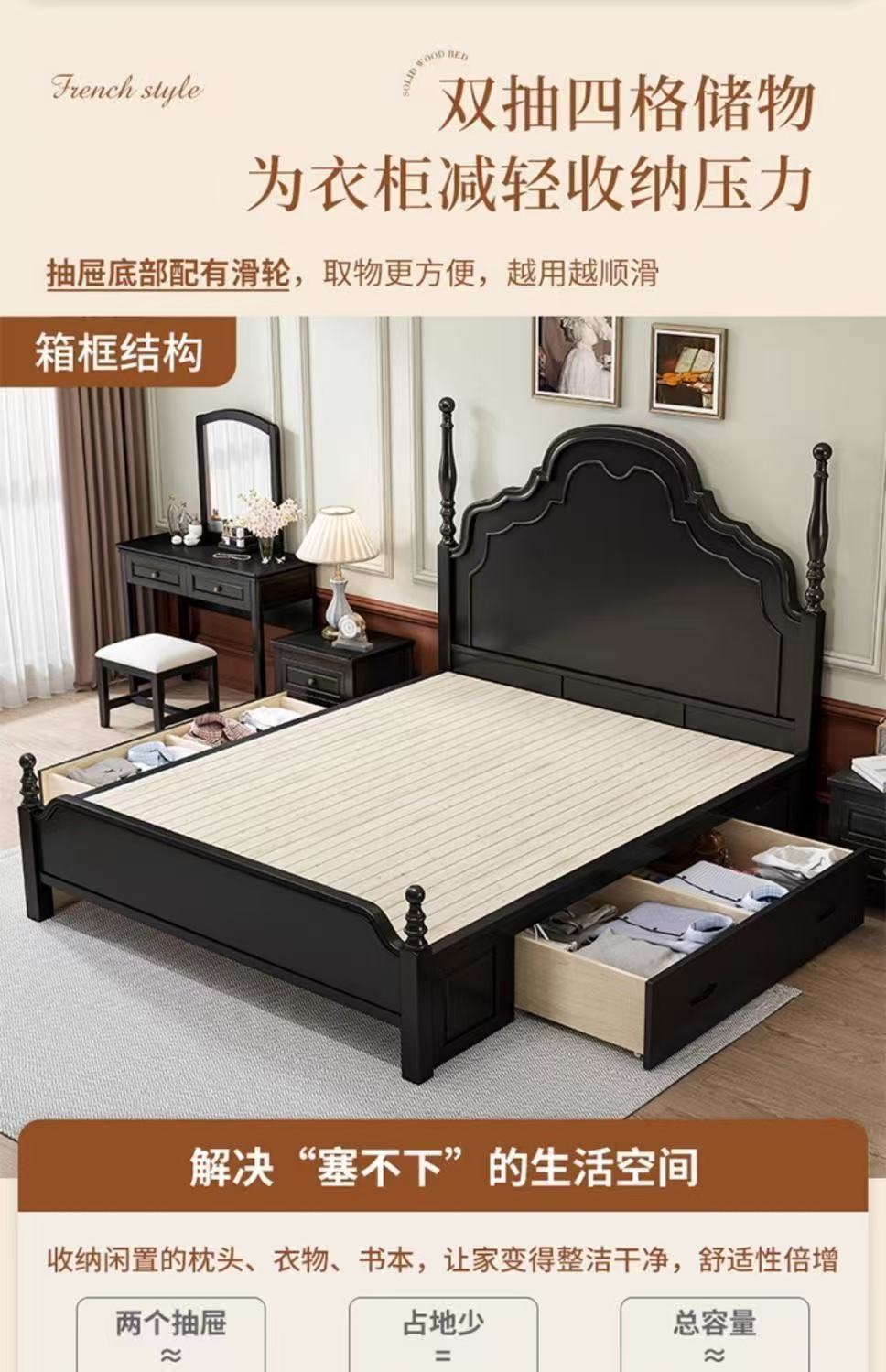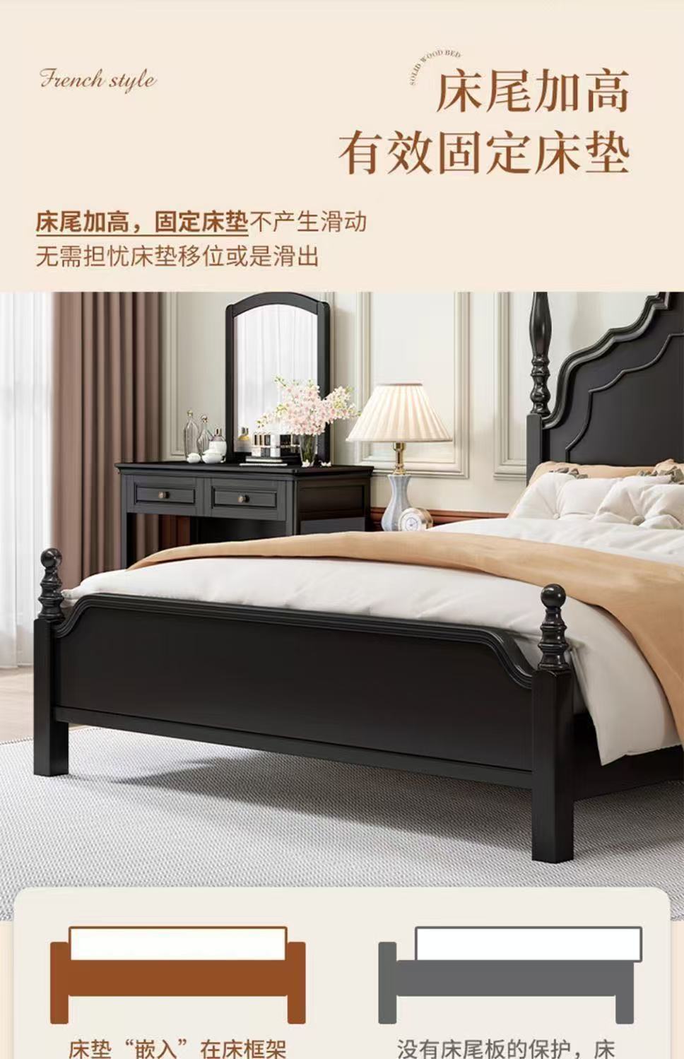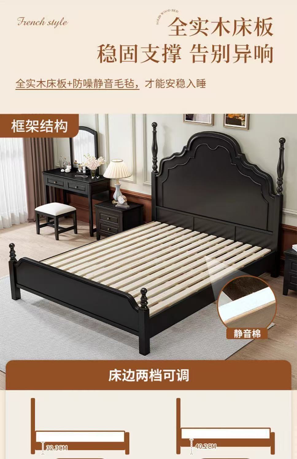 프렌치 라이트 럭셔리 원목 침대 홈 아메리칸 더블 침대 소형 아파트 1.5m1.8m 중세 스타일 웨딩 침대 마스터 침실 대형 침대스토어 가기
