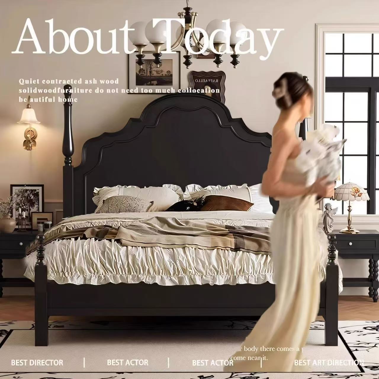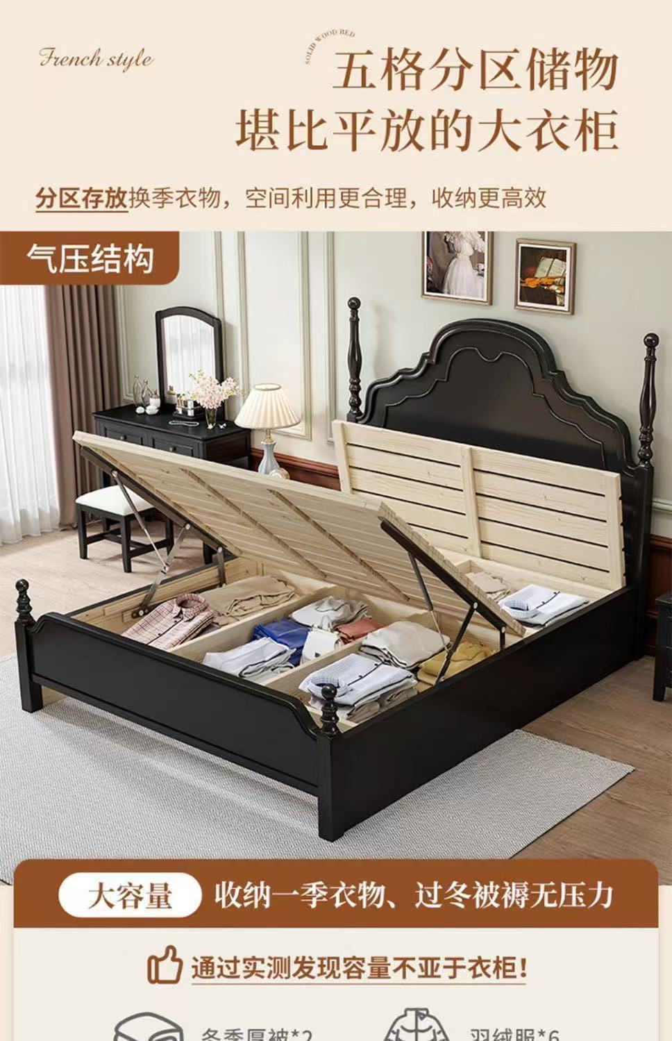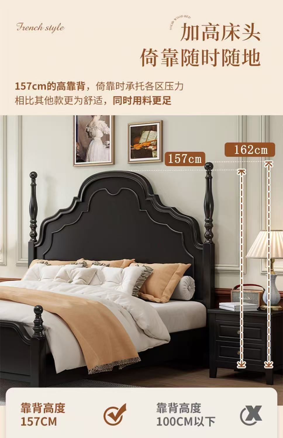 프렌치 라이트 럭셔리 원목 침대 홈 아메리칸 더블 침대 소형 아파트 1.5m1.8m 중세 스타일 웨딩 침대 마스터 침실 대형 침대스토어 가기