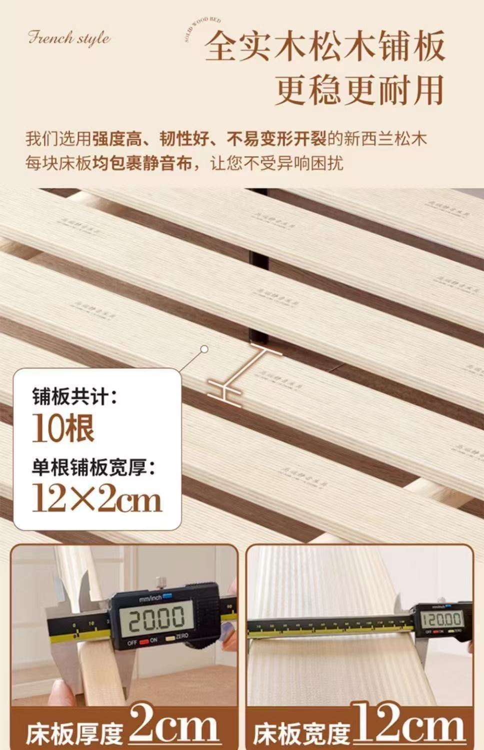 • 프렌치 침대 + 20cm 척추 보호 코코넛 야자 매트 + 캐비닛 * 2 - 무소음
