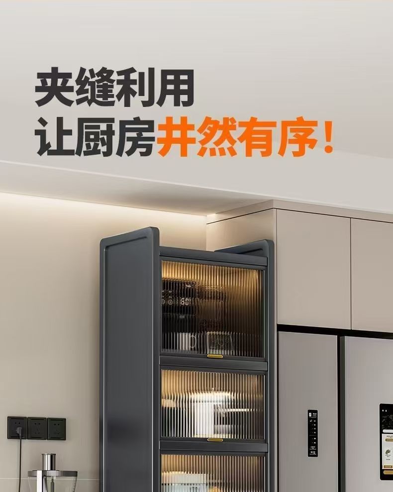 주방 틈새 수납 선반, 바닥에서 천장까지 이어지는 다층 냄비 수납 캐비닛, 전자레인지 다기능 캐비닛, 높이가 높은 수납 선반