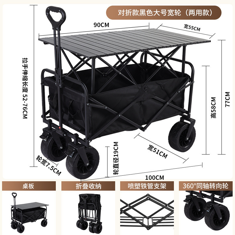 • 캠프카 + 접이식 테이블 - 브레이크가 장착된 대형 오프로드 휠(블랙)