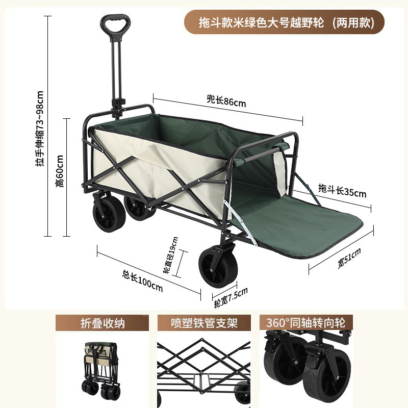 • 캠프카 + 접이식 스톨 테이블 - 브레이크가 장착된 대형 오프로드 휠(카키색)