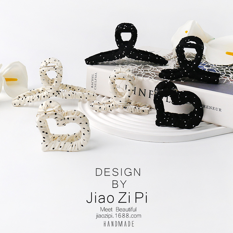 • 러브 블랙 폴카 도트 천 그리퍼 58*53mm