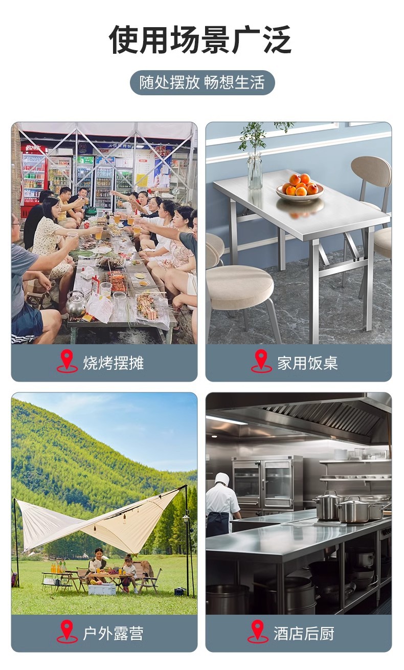 加厚不锈钢折叠桌商用夜市摆摊烧烤桌子家用户外便携简易长条餐桌