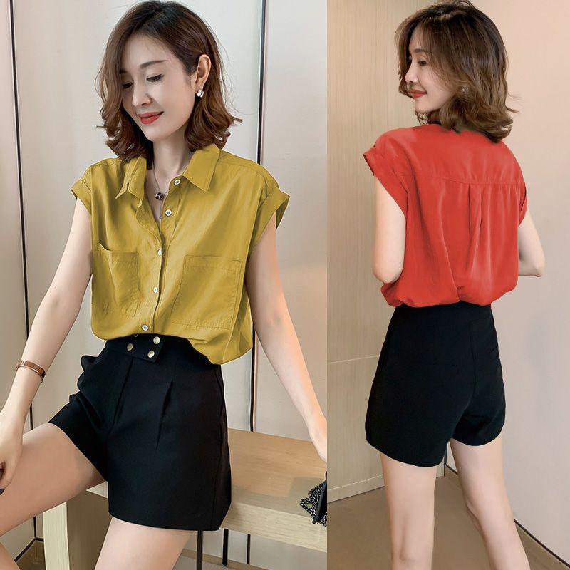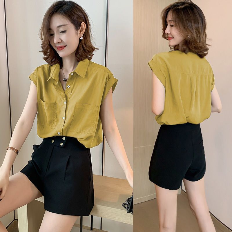 여성용 탑 디자인, 여성용 니치 쉬폰 반팔 셔츠, 여름 신작 패션 한국식 여성용 루즈 슬리밍 셔츠스토어 가기