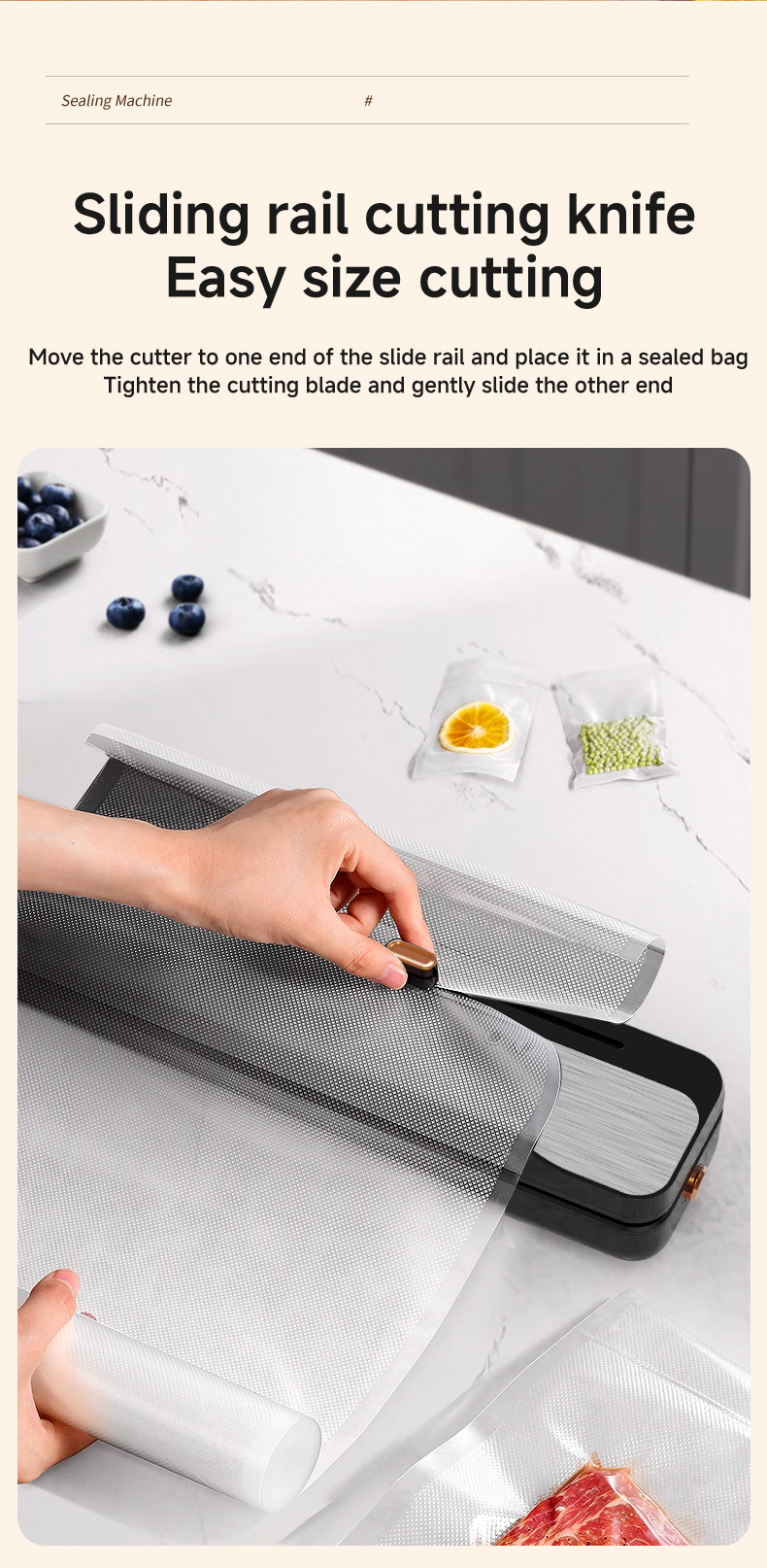 功能介绍:真空封口干货点抽单封口滑动切刀