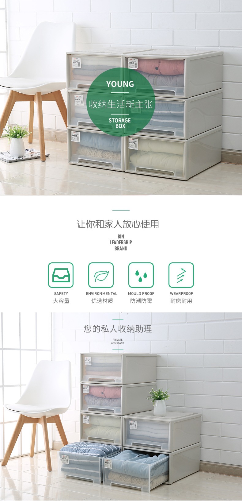 플라스틱 정리함 서랍형 수납함 투명 수납함 초대형 다층 조합 수납장 홈 옷장
