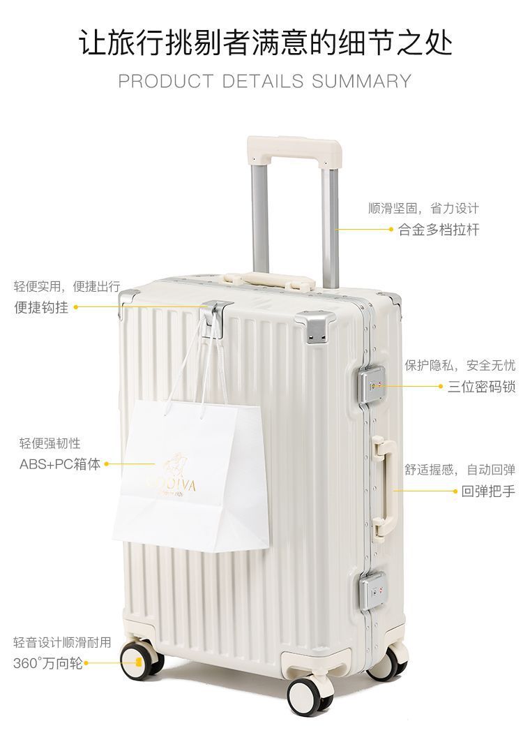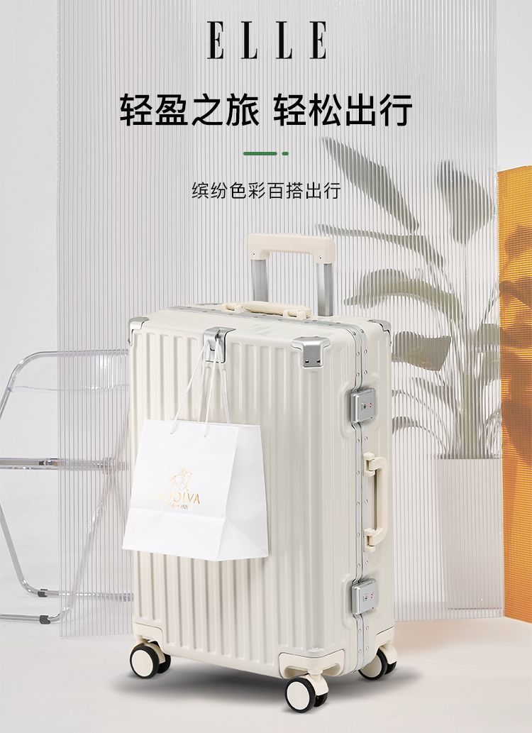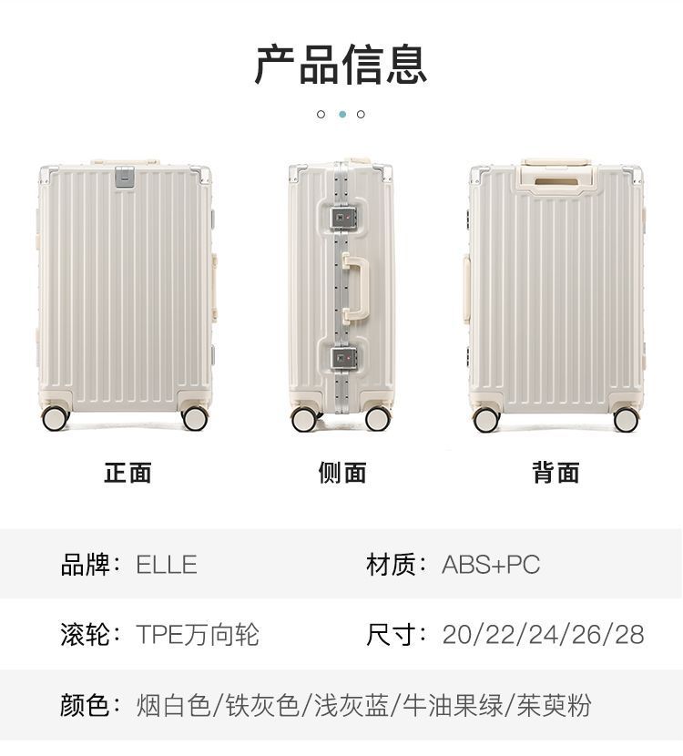 ELLE 클래식 알루미늄 프레임 가방 여성용 트롤리 케이스 20inch 탑승 케이스 24inch 대용량 비밀번호 상자 여행 가방스토어 가기