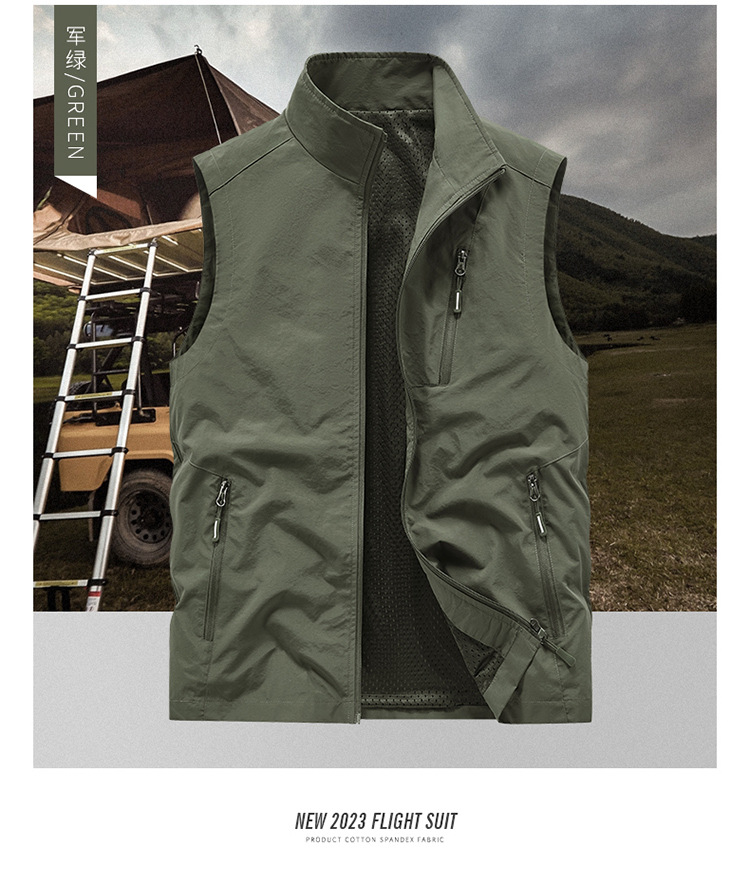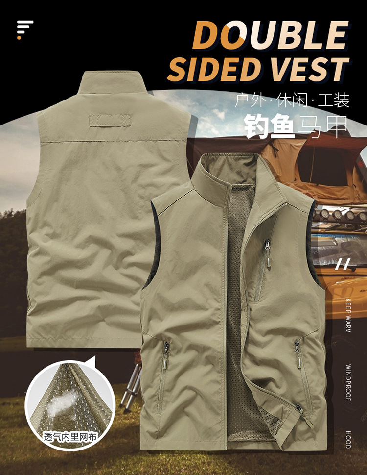 봄과 가을 야외 스포츠 조끼 남자 통기성 멀티 포켓 낚시 조끼 등산 사진 조끼 간단한 다목적 재킷스토어 가기