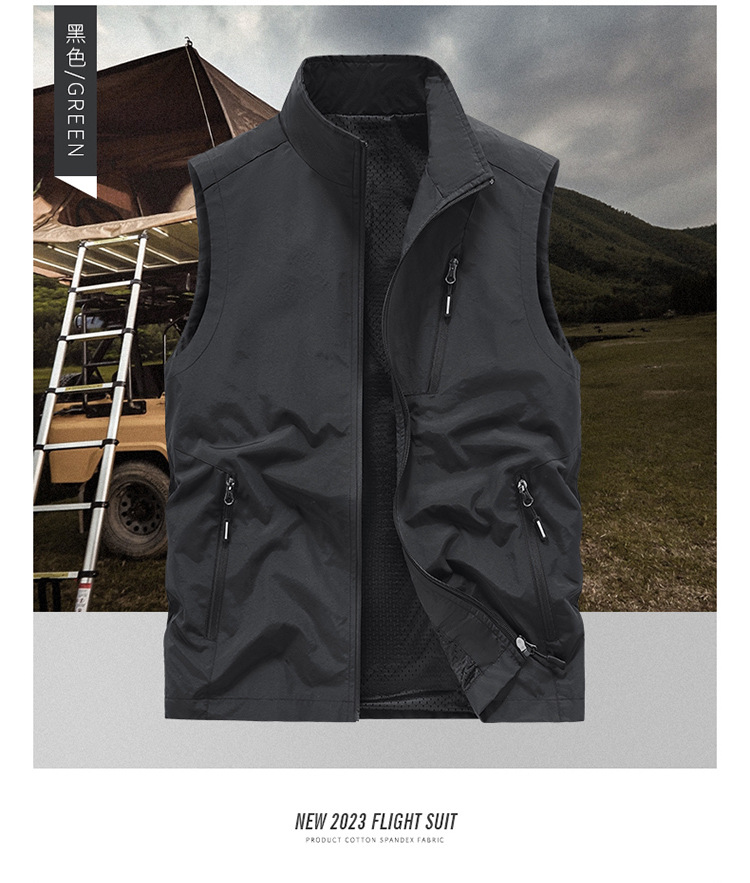 봄과 가을 야외 스포츠 조끼 남자 통기성 멀티 포켓 낚시 조끼 등산 사진 조끼 간단한 다목적 재킷