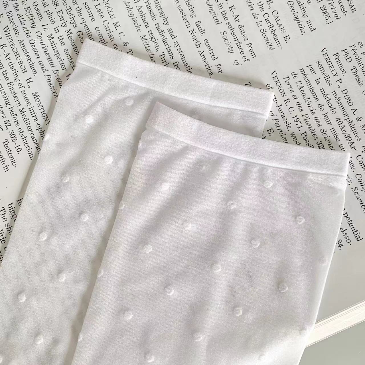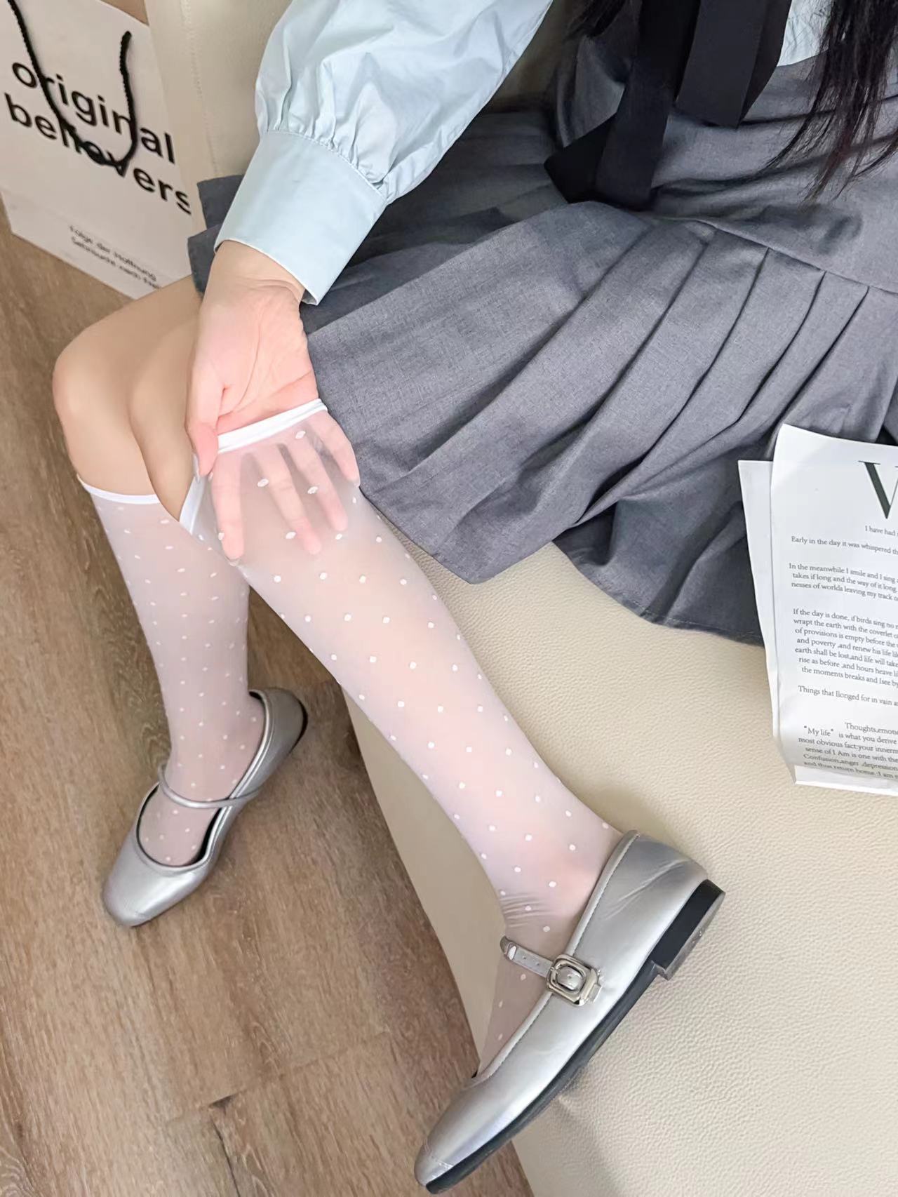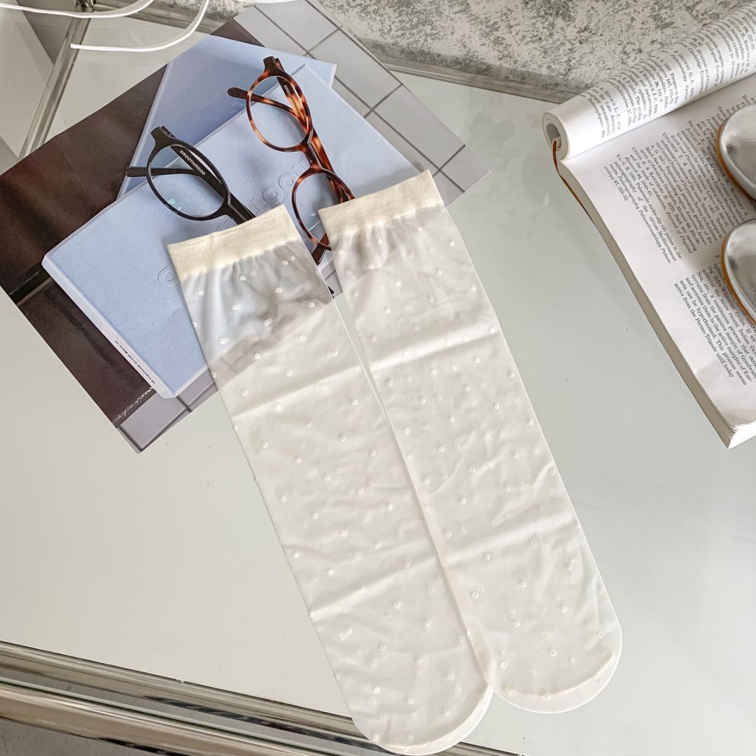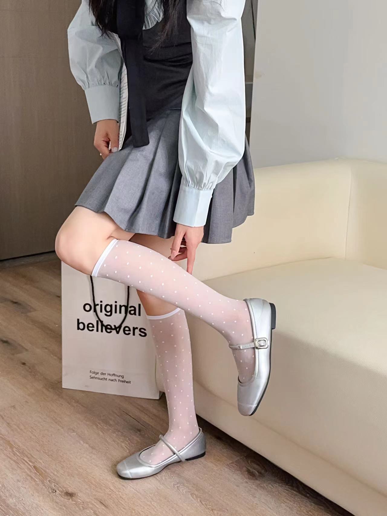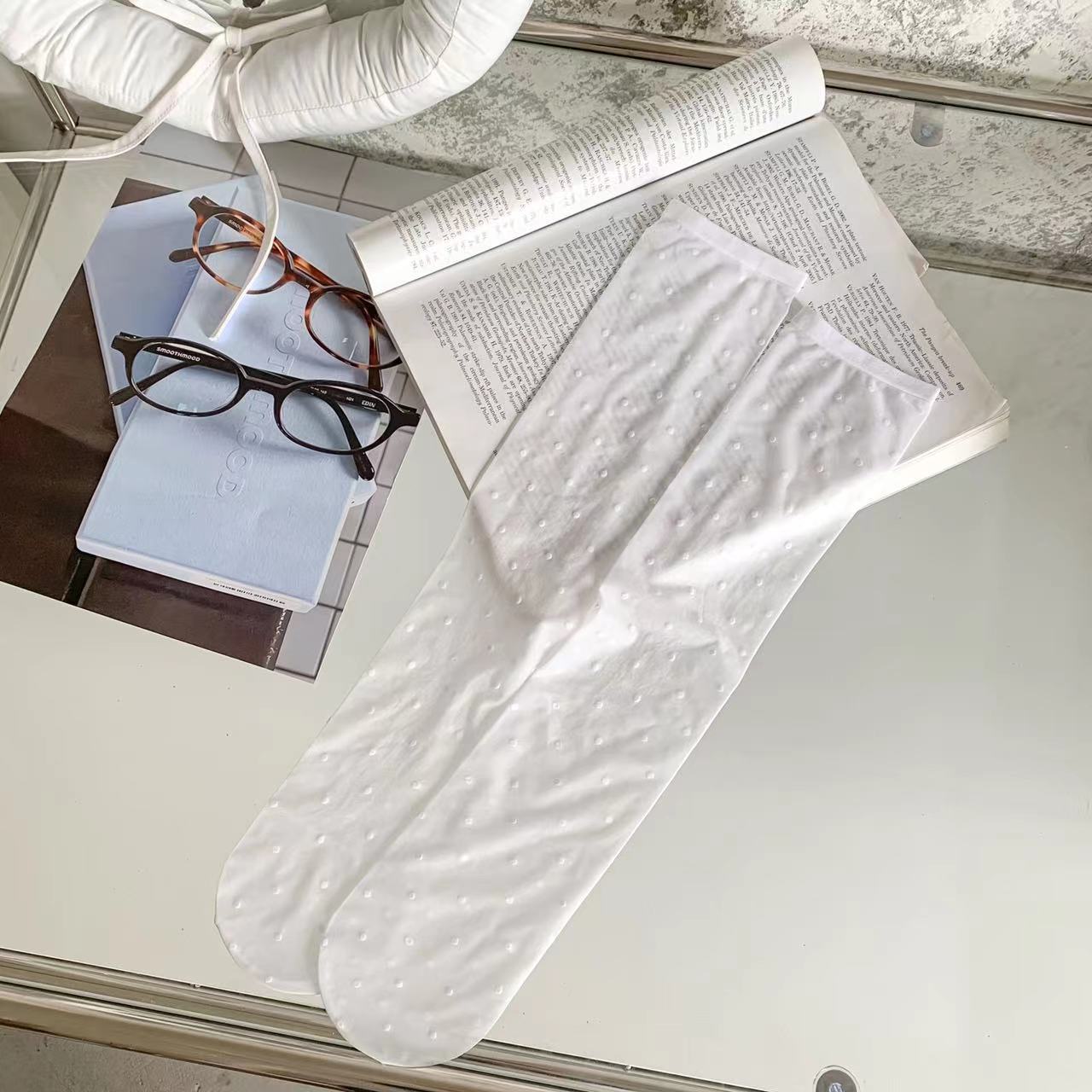 여성용 흰색 양말 여름 얇은 폴카 도트 종아리 양말 발레 스타일 miu 스타일 스타킹 무릎 위 스타킹 허벅지 양말
