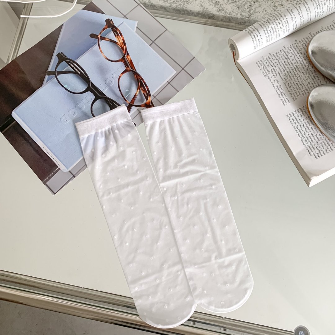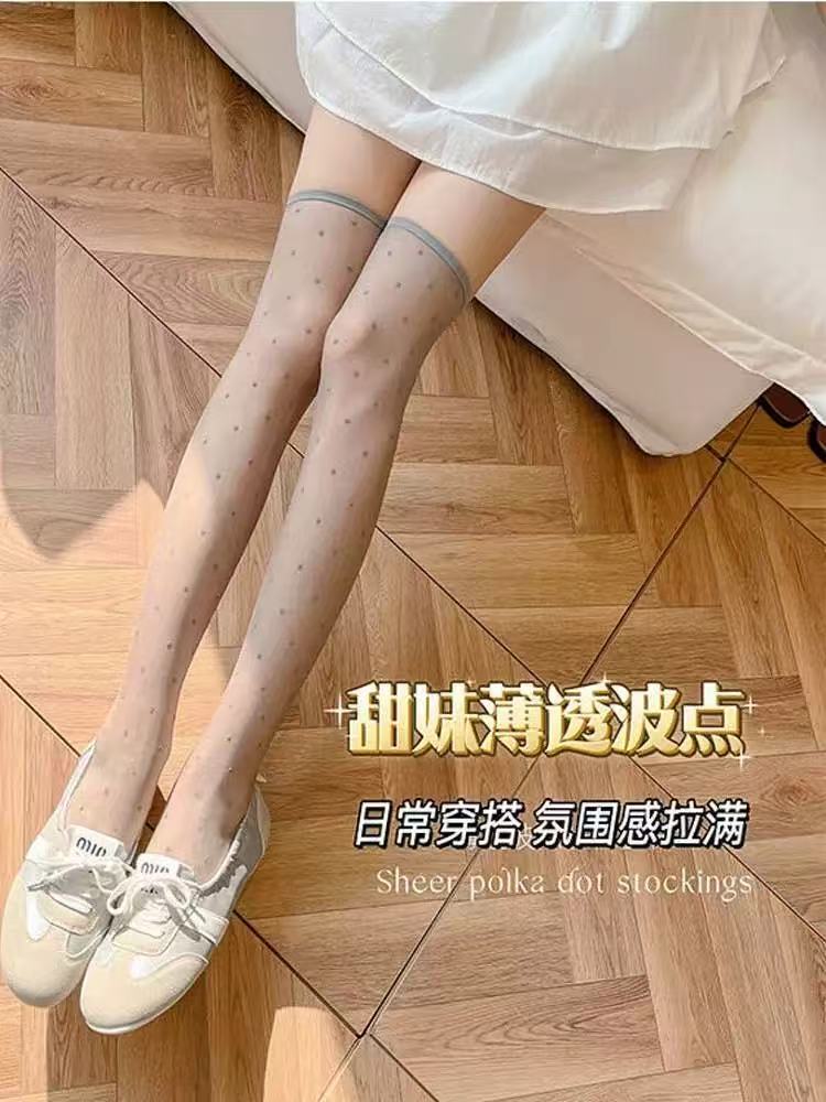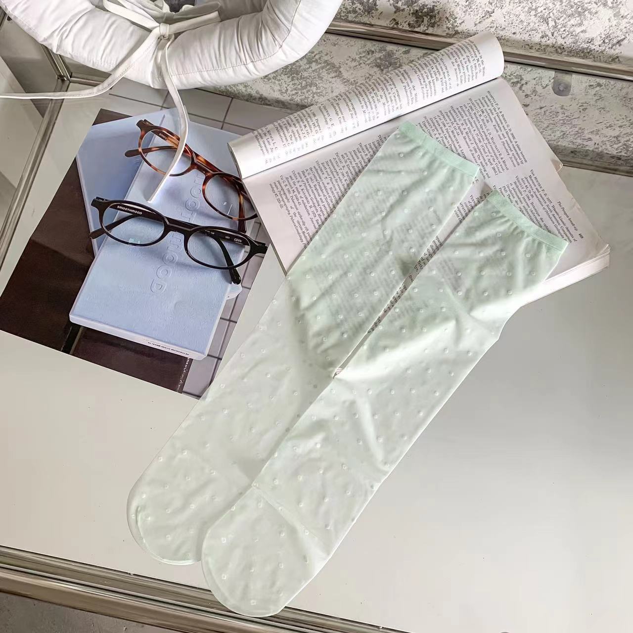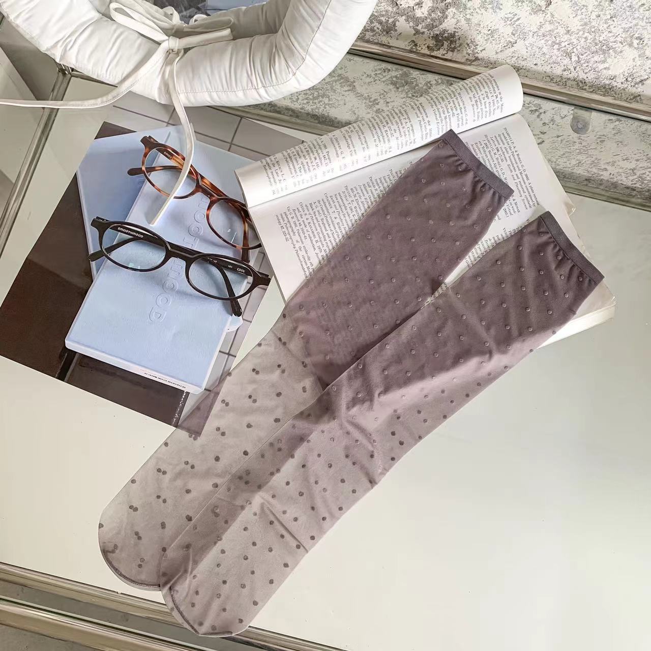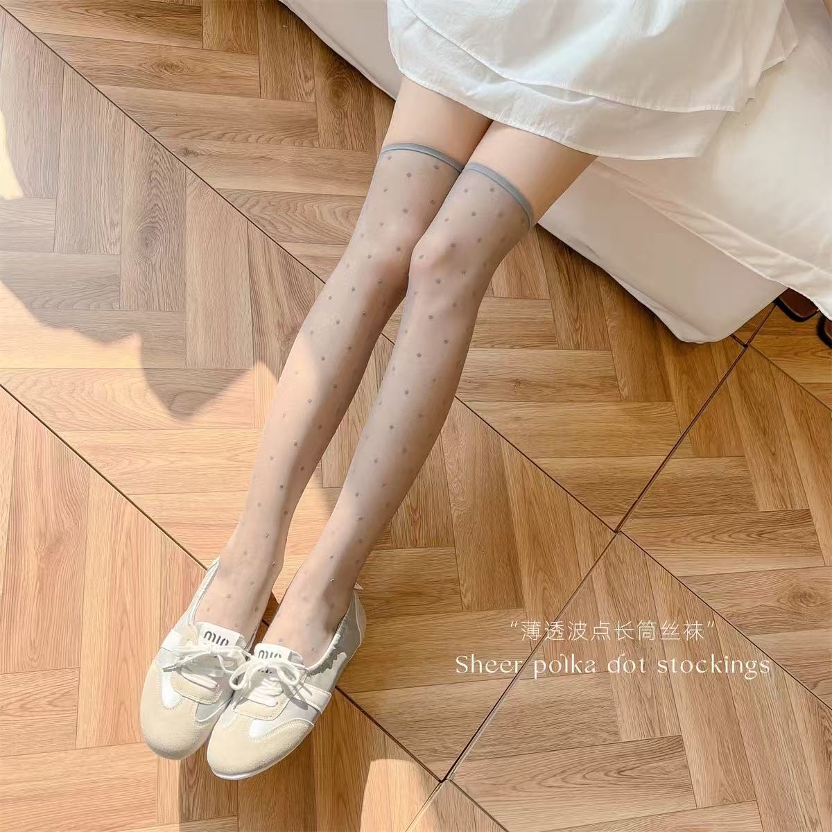 여성용 흰색 양말 여름 얇은 폴카 도트 종아리 양말 발레 스타일 miu 스타일 스타킹 무릎 위 스타킹 허벅지 양말