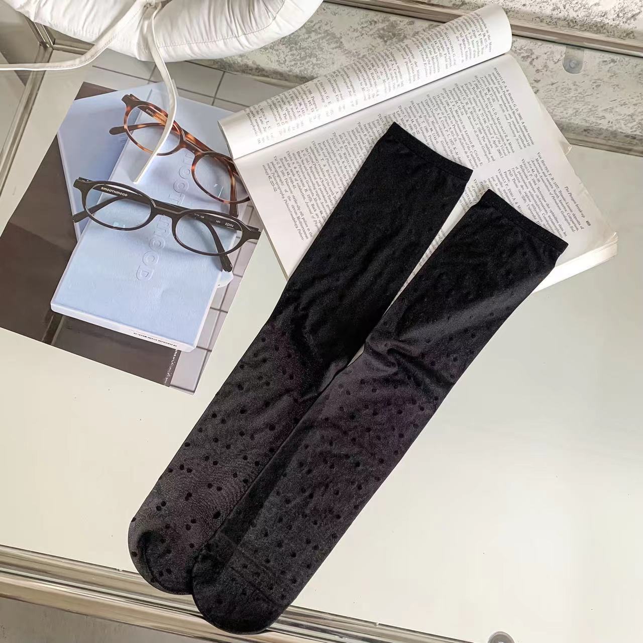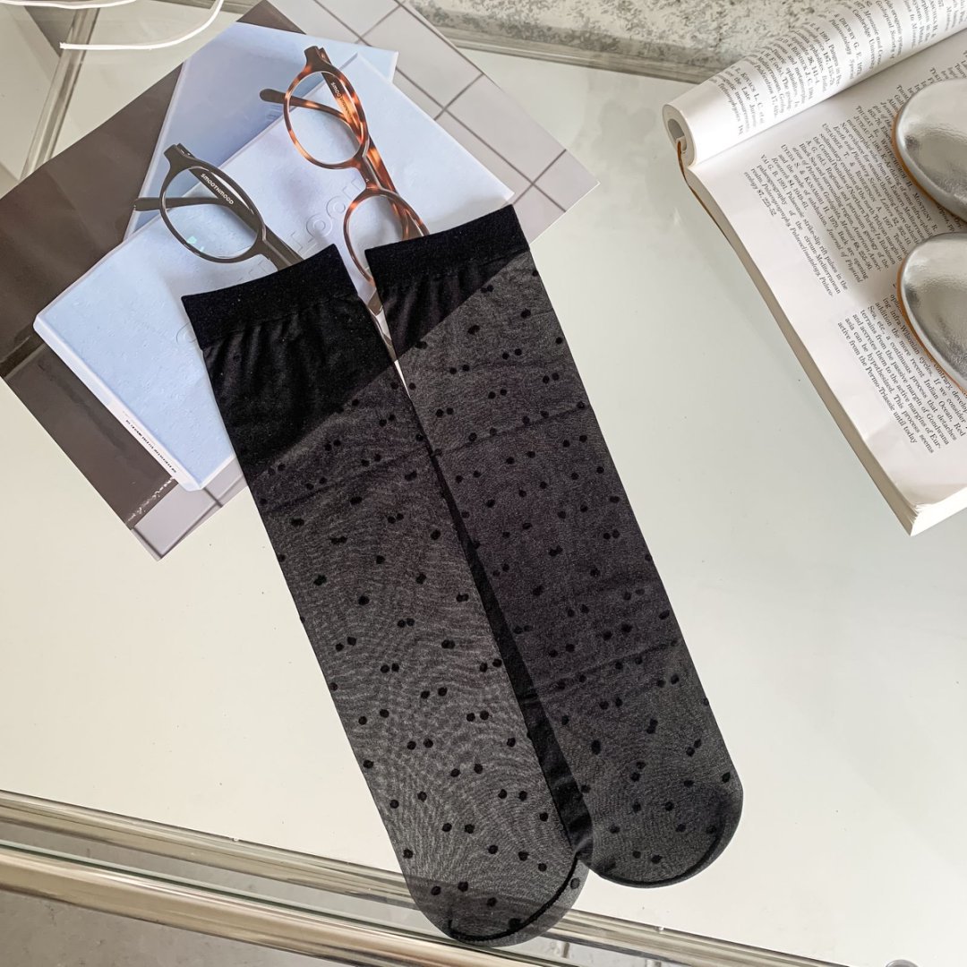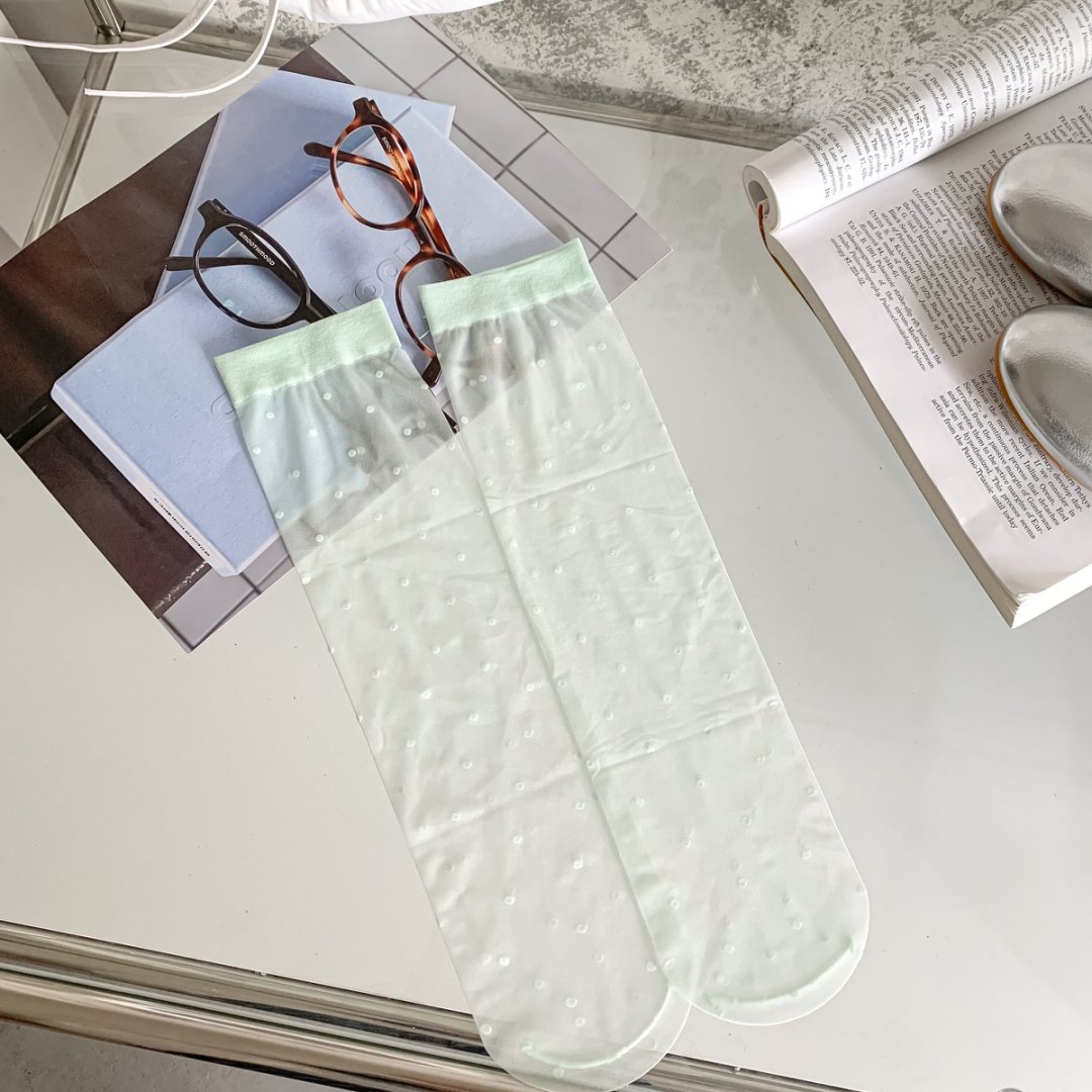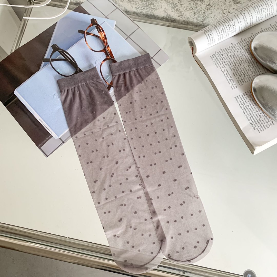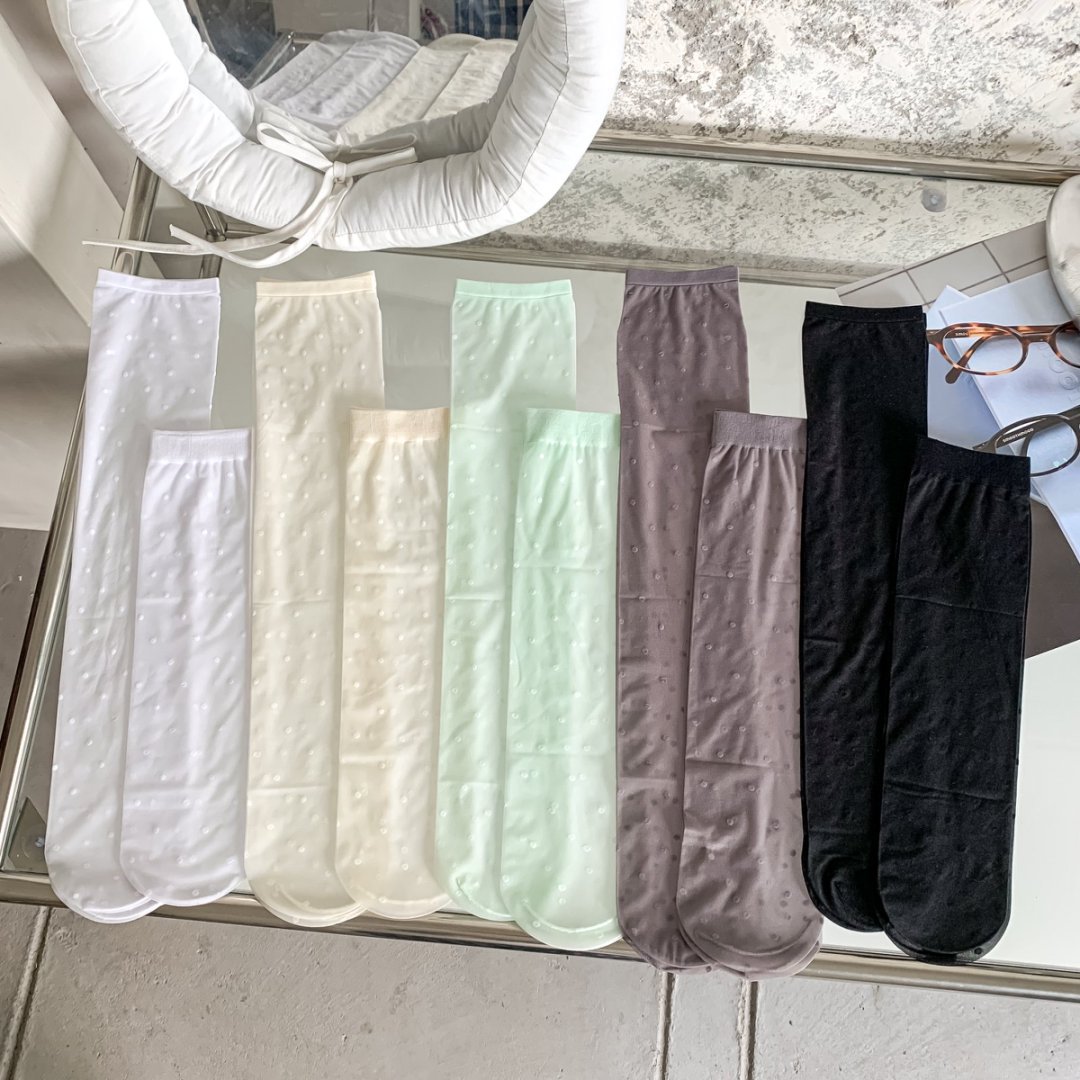 여성용 흰색 양말 여름 얇은 폴카 도트 종아리 양말 발레 스타일 miu 스타일 스타킹 무릎 위 스타킹 허벅지 양말