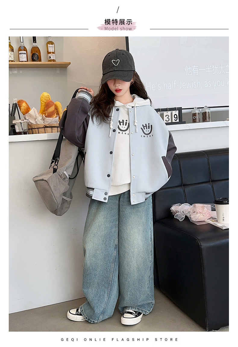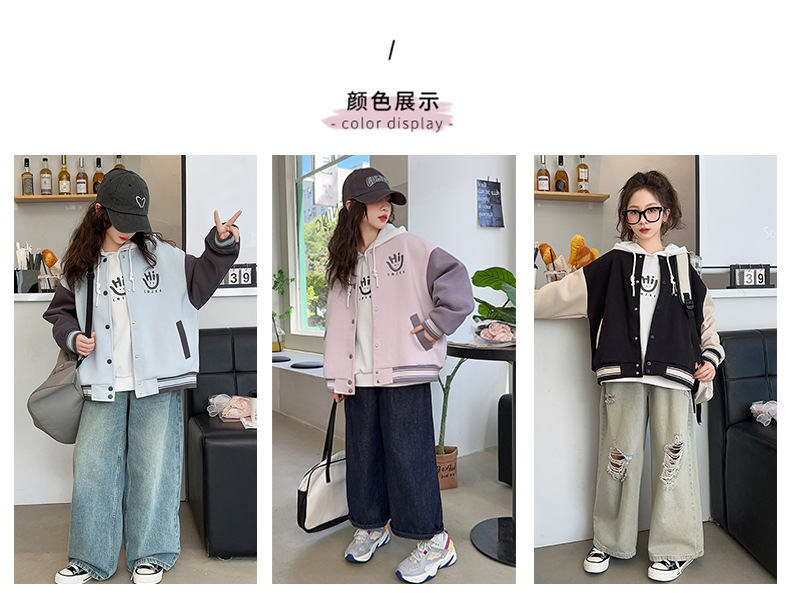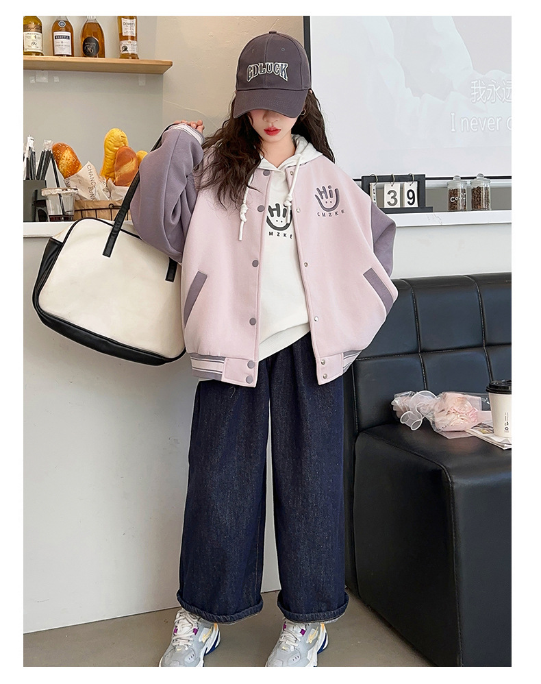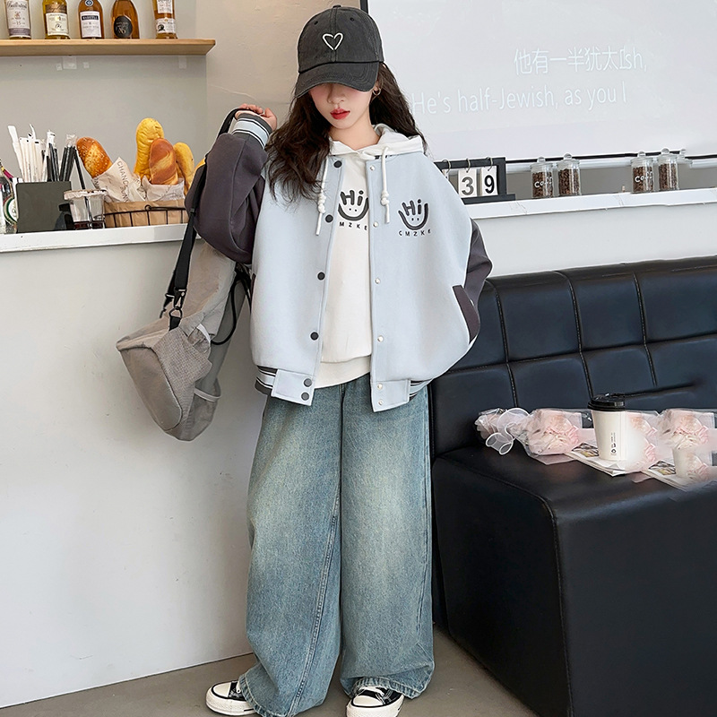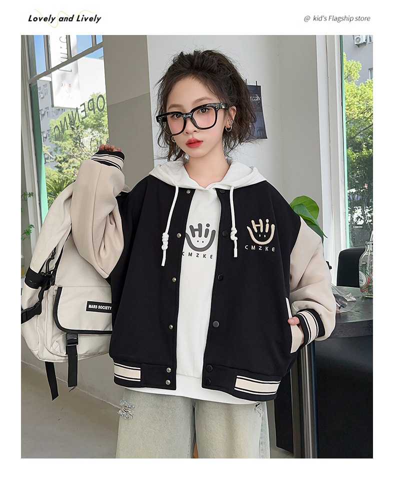 여자 봄, 가을 야구 유니폼 캐주얼 재킷 2025 중대형 어린이 새로운 유행 어린이 가을 재킷 탑 크로스 보더스토어 가기