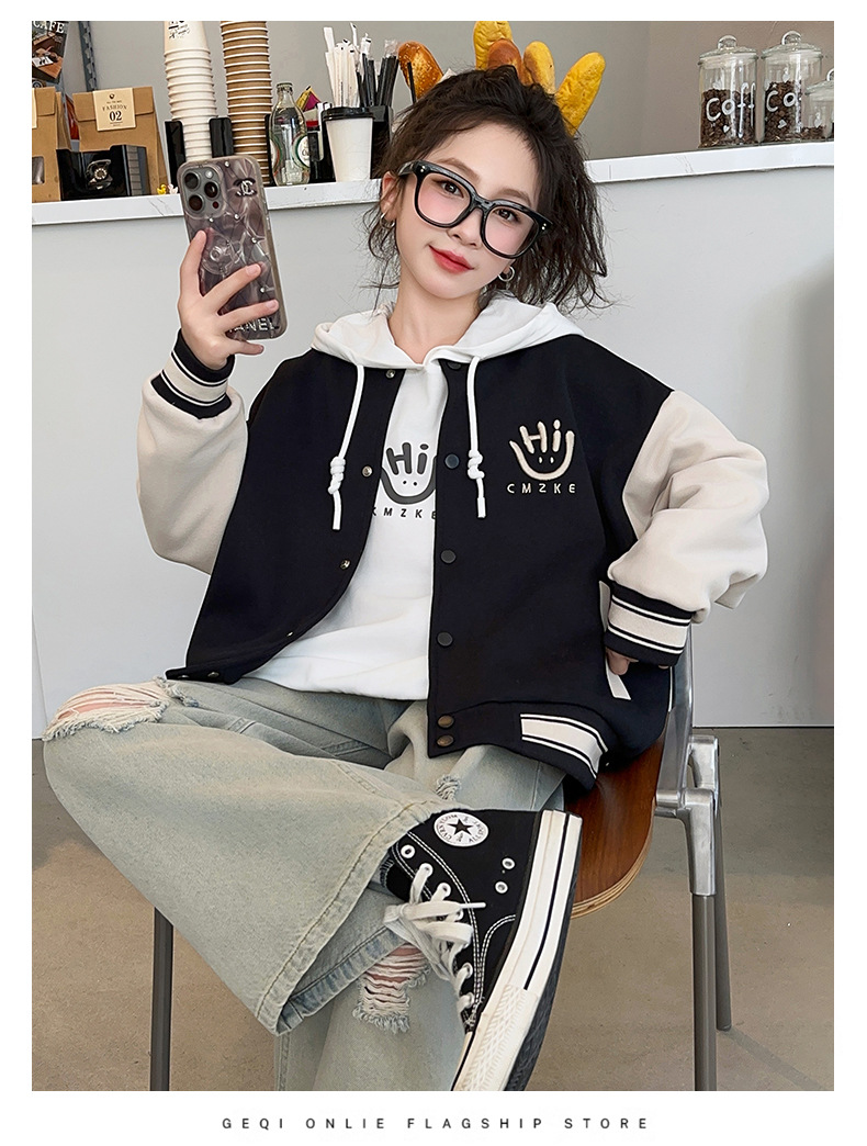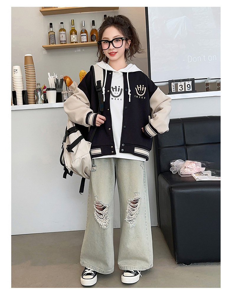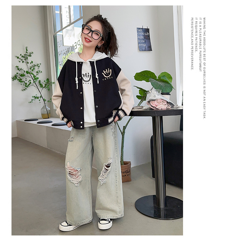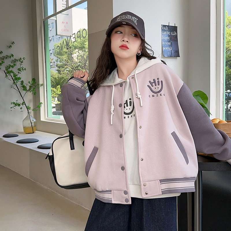 여자 봄, 가을 야구 유니폼 캐주얼 재킷 2025 중대형 어린이 새로운 유행 어린이 가을 재킷 탑 크로스 보더스토어 가기
