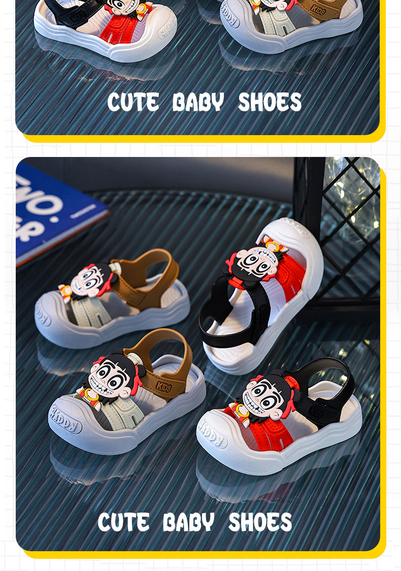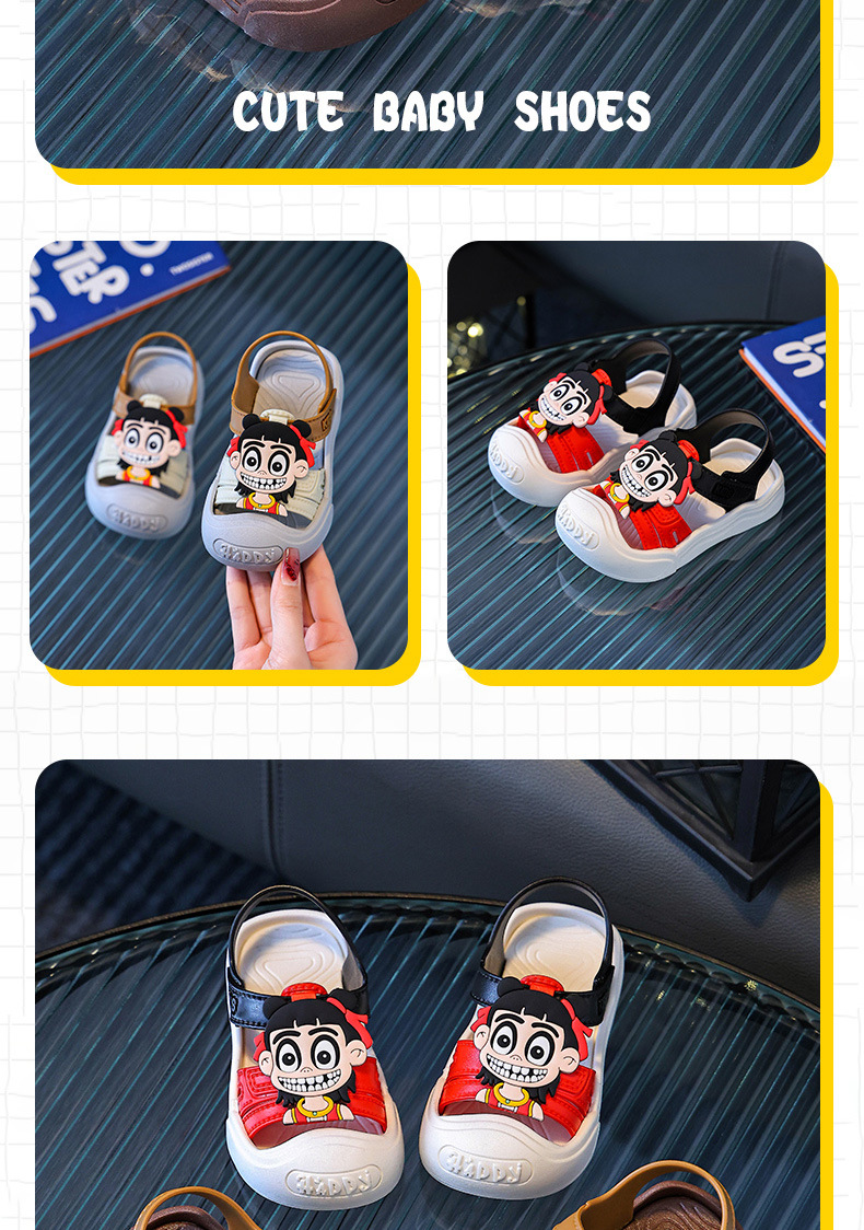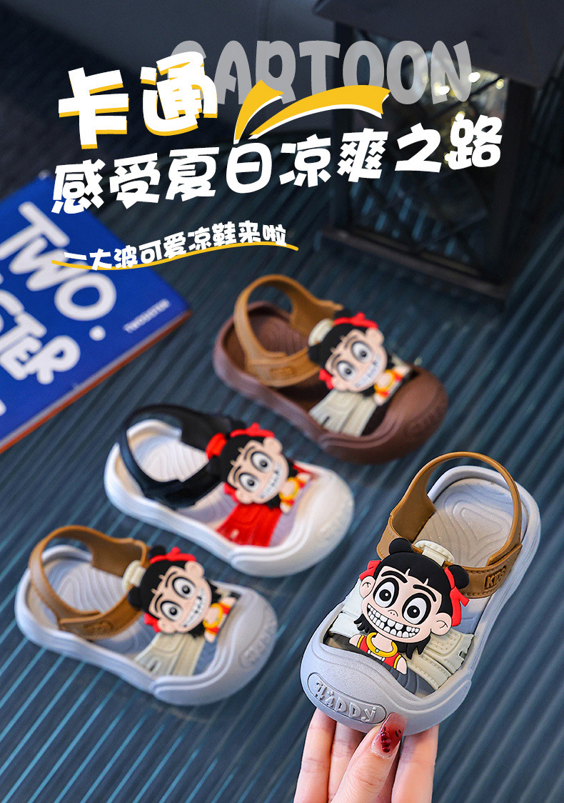 Nezha 어린이 샌들 여름 새로운 한국 스타일 소년 부드러운 바닥 미끄럼 방지 아기 소녀 방수 유아 비치 샌들스토어 가기