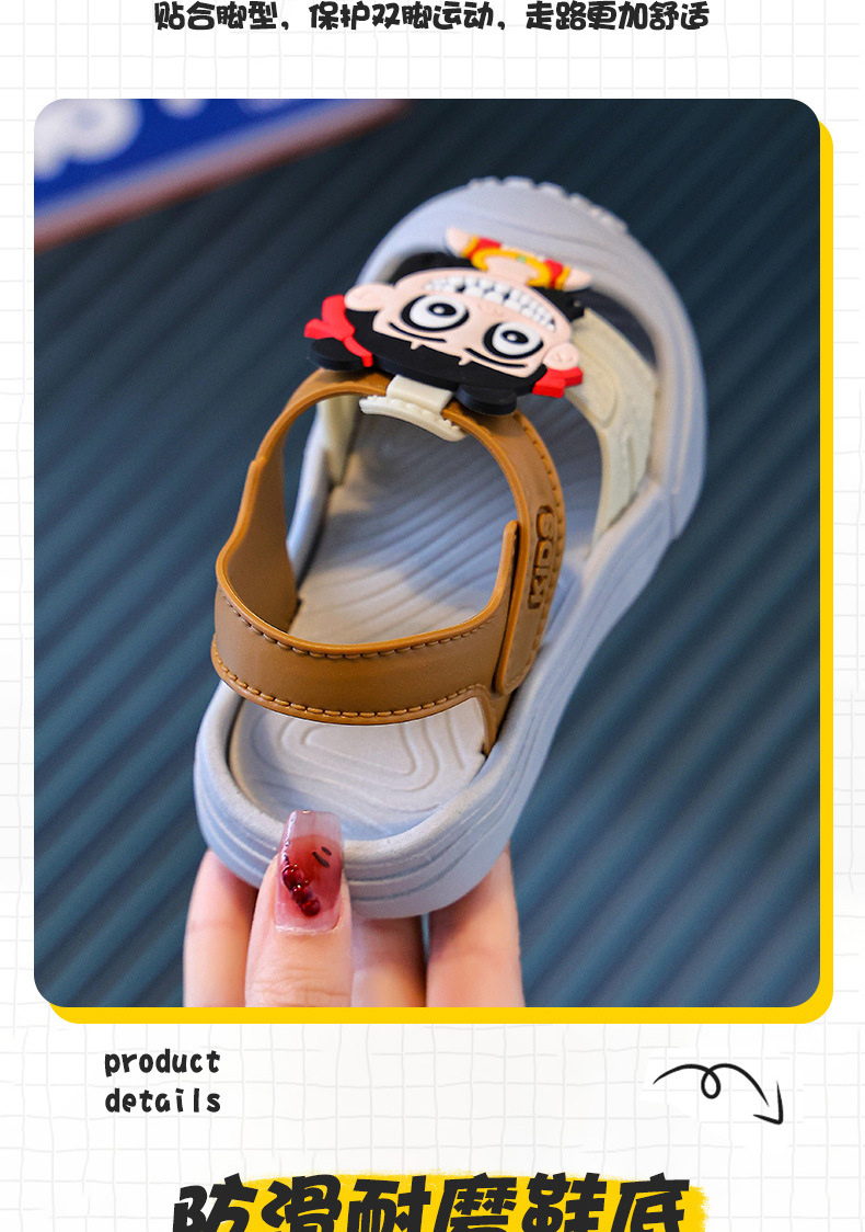 Nezha 어린이 샌들 여름 새로운 한국 스타일 소년 부드러운 바닥 미끄럼 방지 아기 소녀 방수 유아 비치 샌들