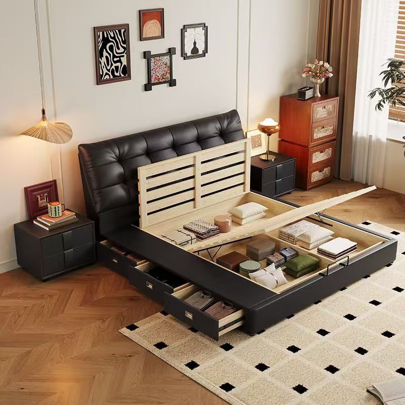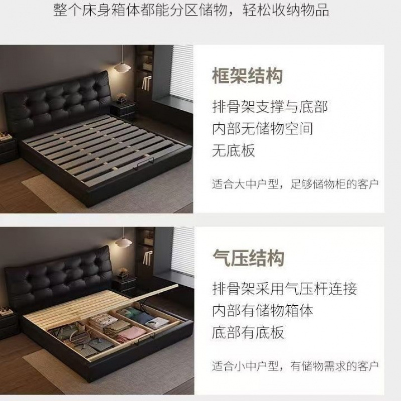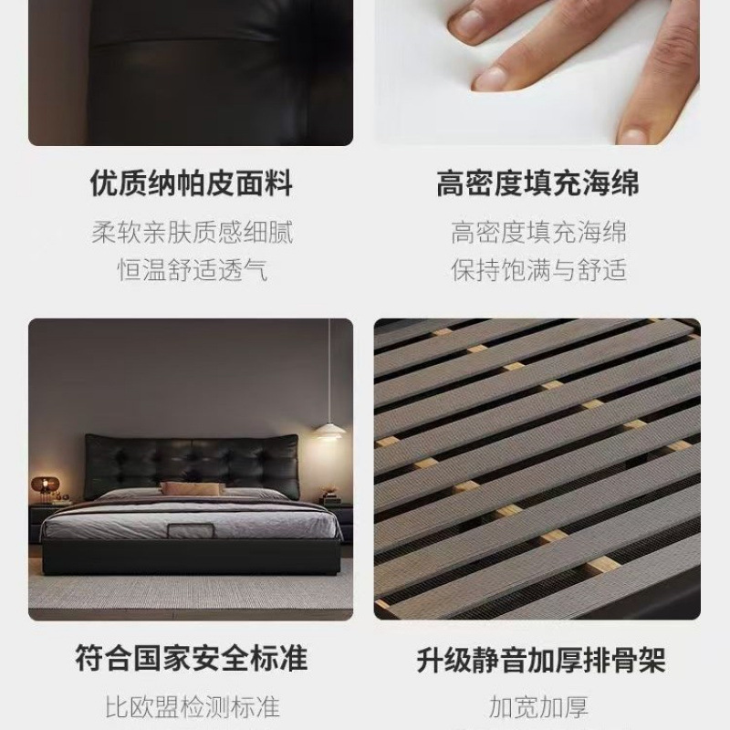모던 라이트 럭셔리 더블 침대 1.8m 나파 가죽 침대 1.5m 소형 주니어 침실 이탈리안 미니멀리스트 수납 소프트 침대