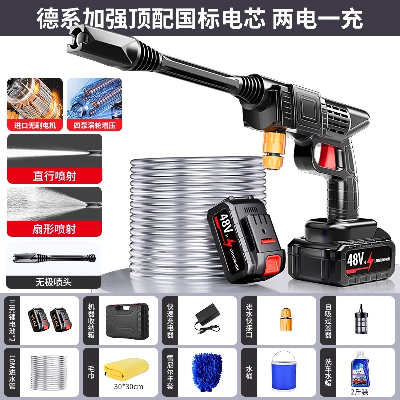 • 터보차저가 장착된 수입 상위 버전 [배터리 2개, 충전기 1개 + 10m 물 파이프 + 공구 상자 + 수건 + 물 왁스]