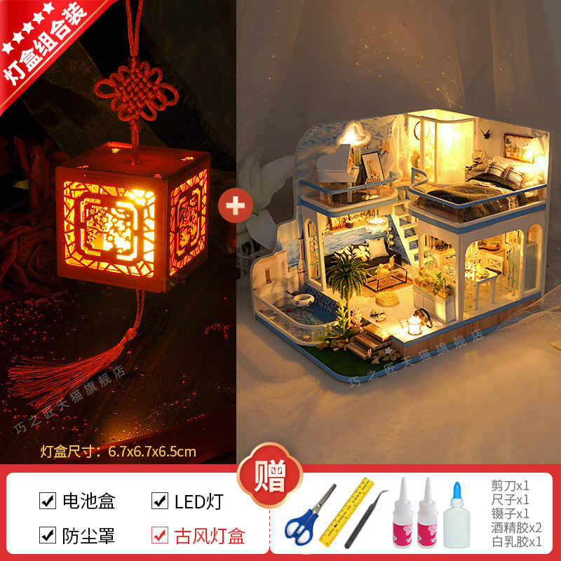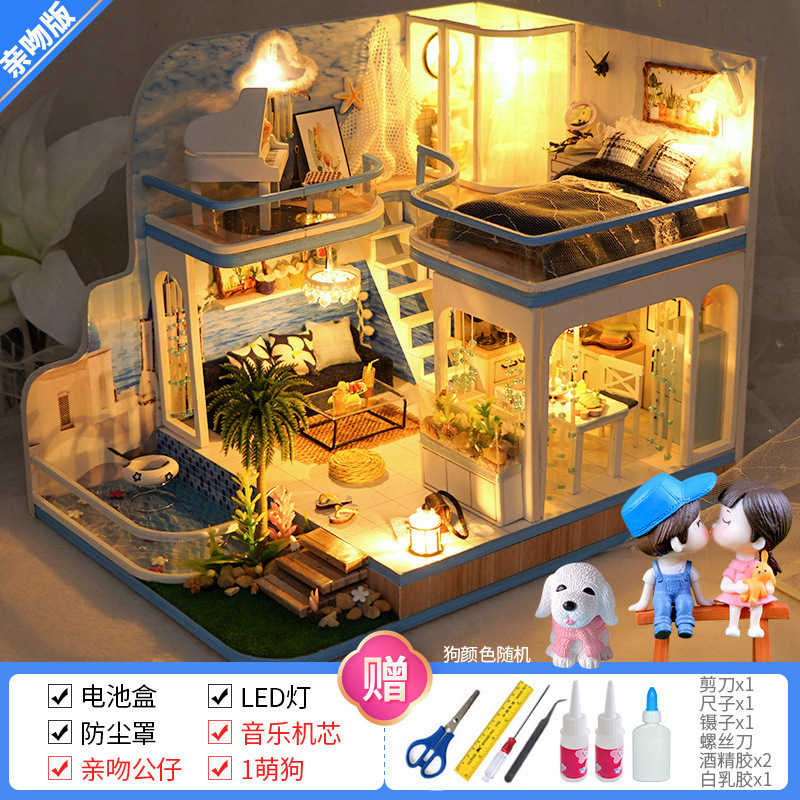 Diy 수제 캐빈 빌라 미니 작은 집 조립 모델 세계 빌딩 블록 장난감 여성을위한 생일 선물
