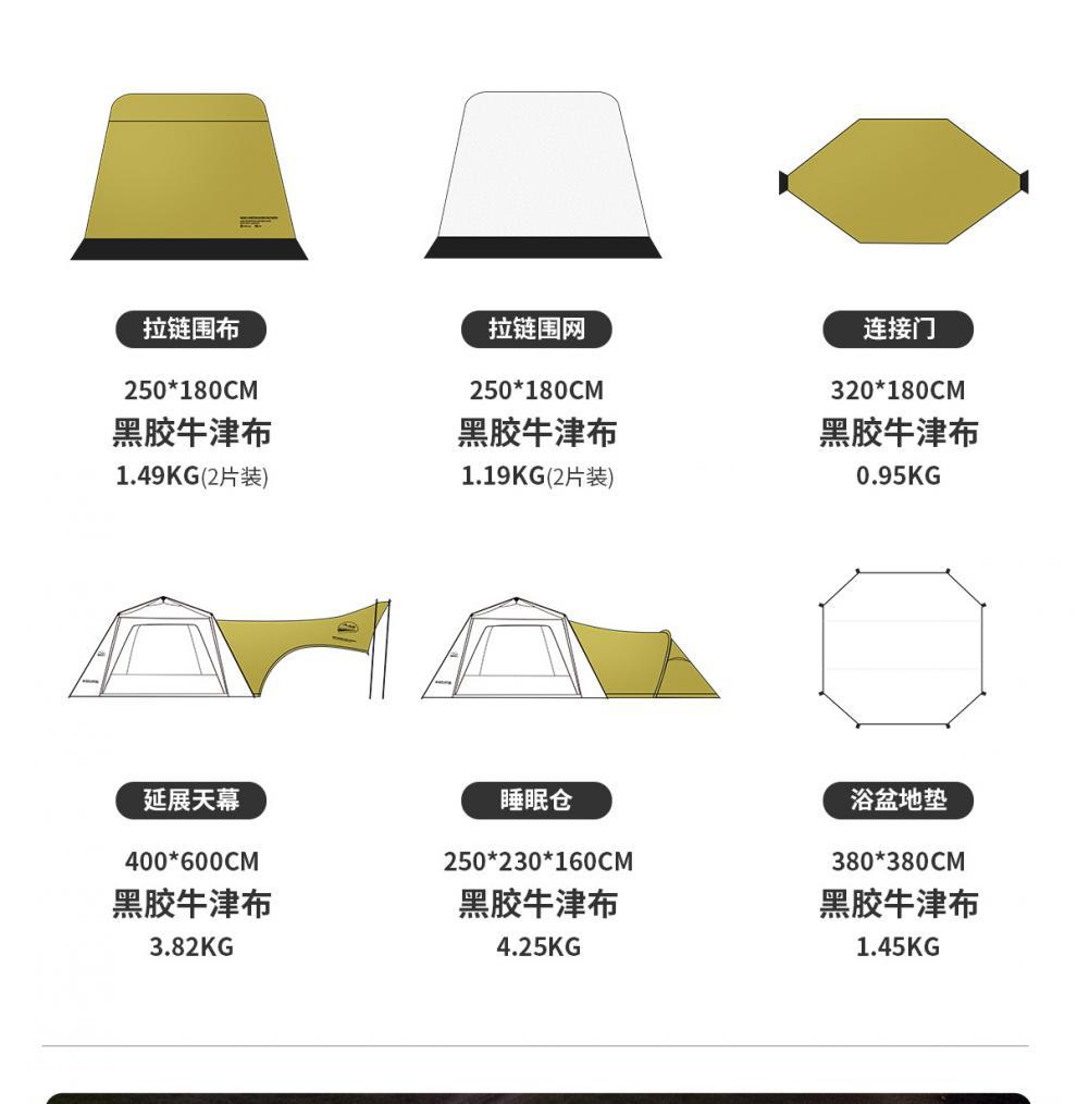 • 머스타드 옐로우 메인 텐트 + 수면 챔버 + 캐노피 + 메쉬*2 + 바닥 천