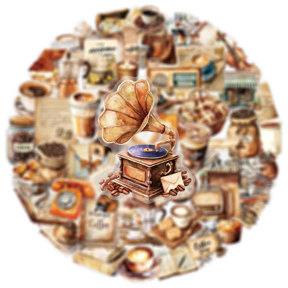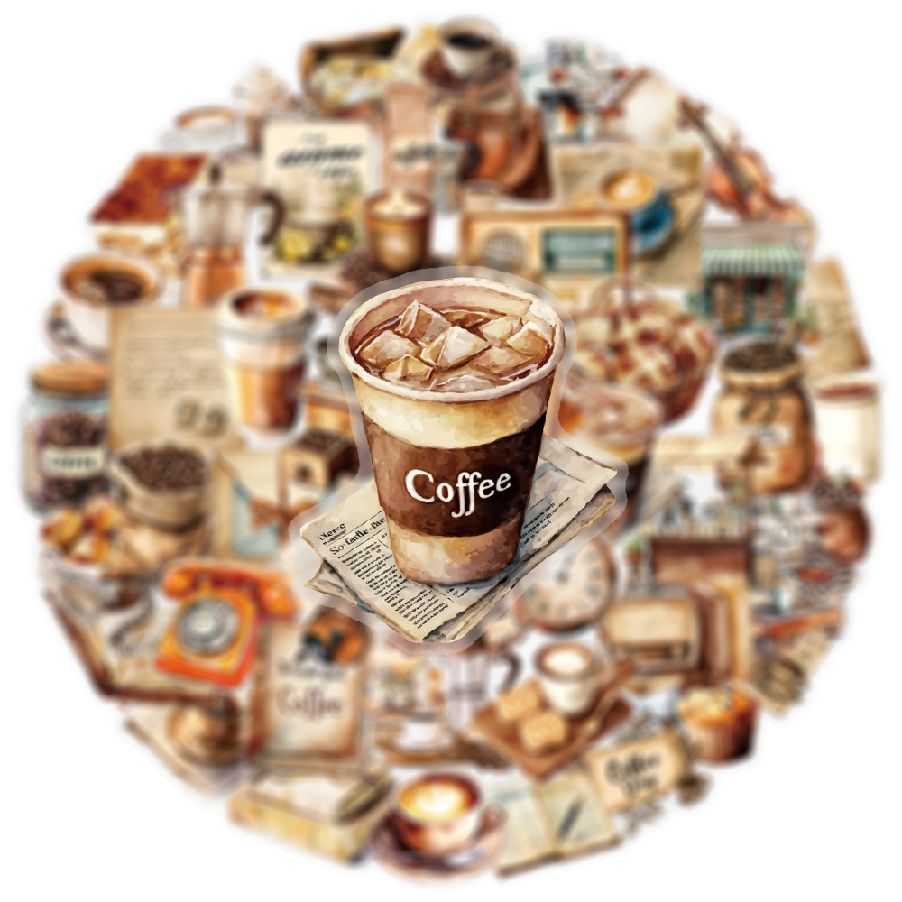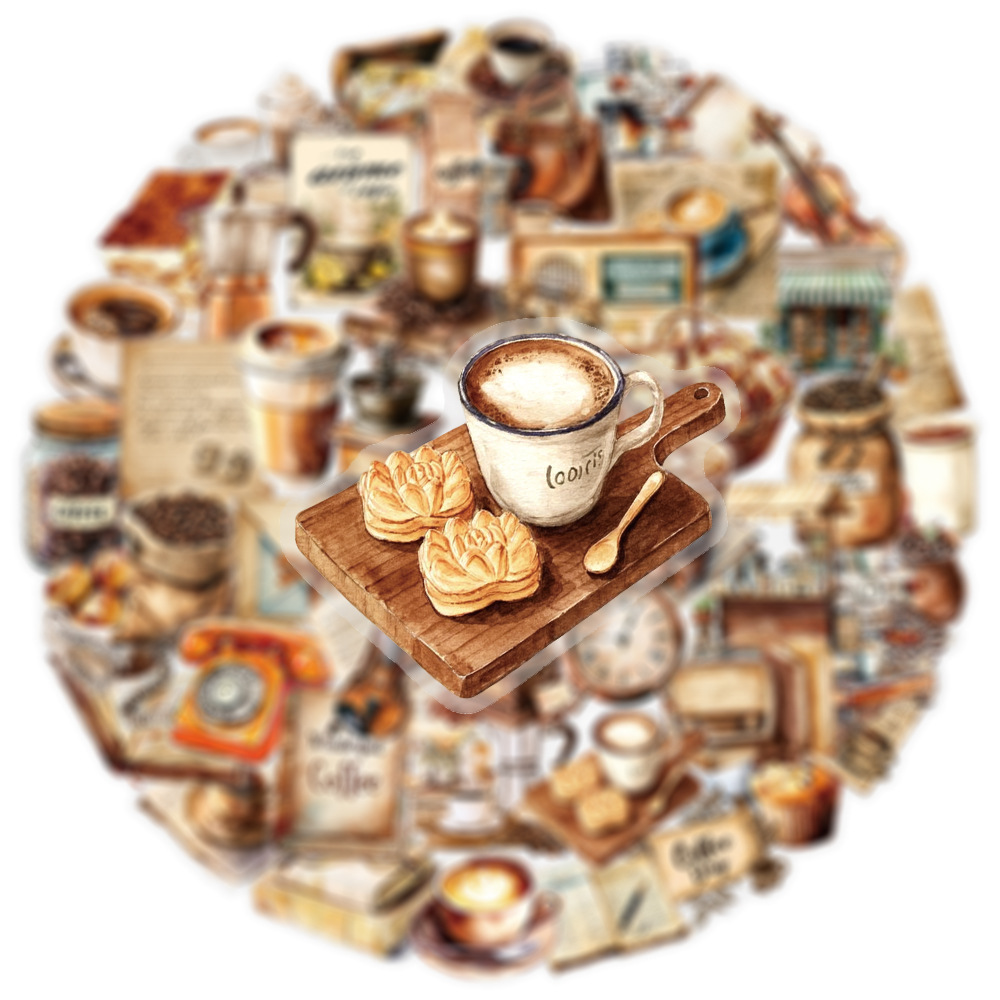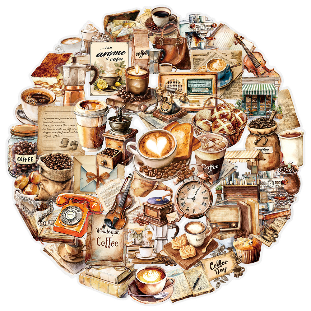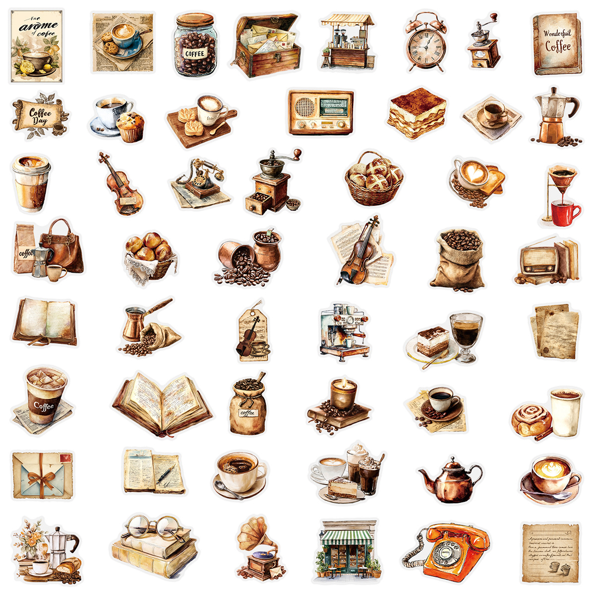 50 레트로 커피 스티커 핸드북 일기 휴대 전화 기타 스케이트 보드 컴퓨터 워터 컵 방수 데스크탑 장식 스티커